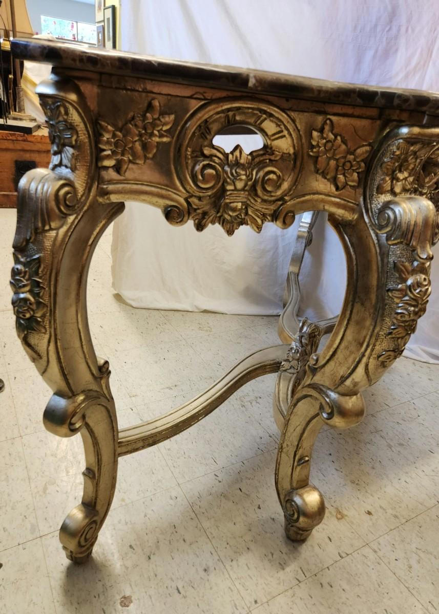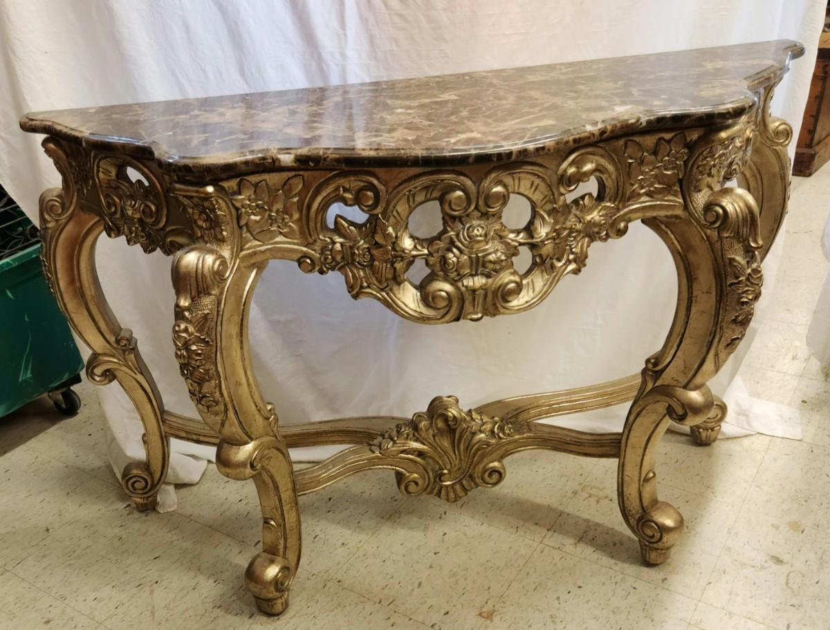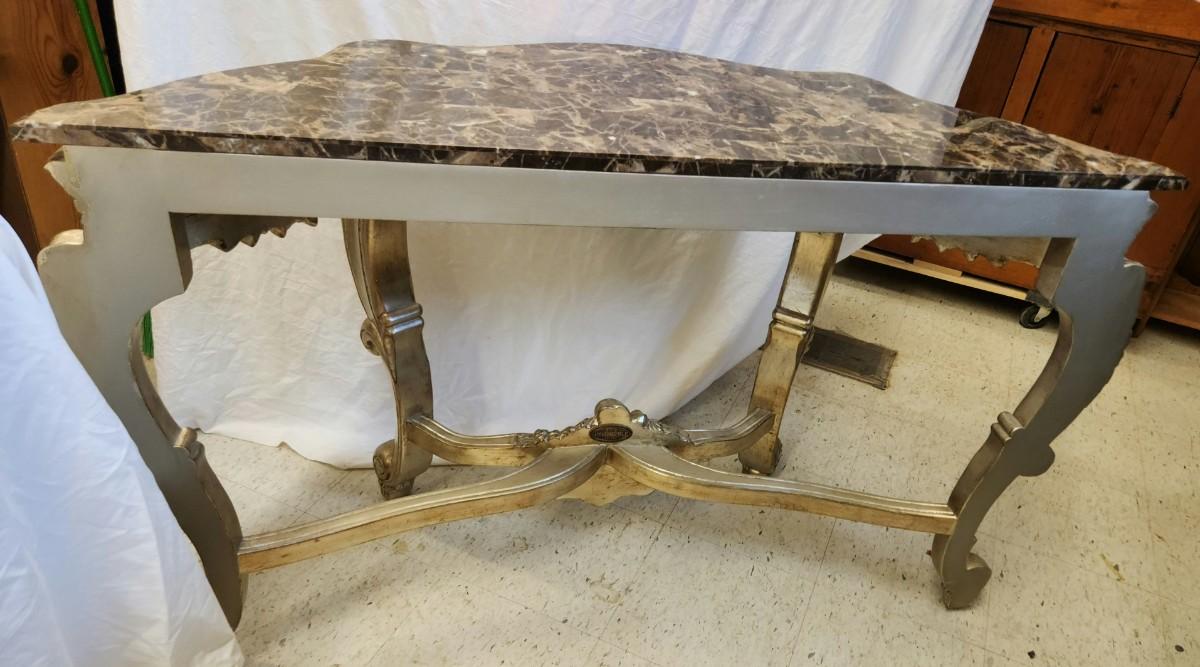 Amazing invincible brand marble topped console table. This is a large piece of furniture so watch the measurements please. 57"x20" x 34"