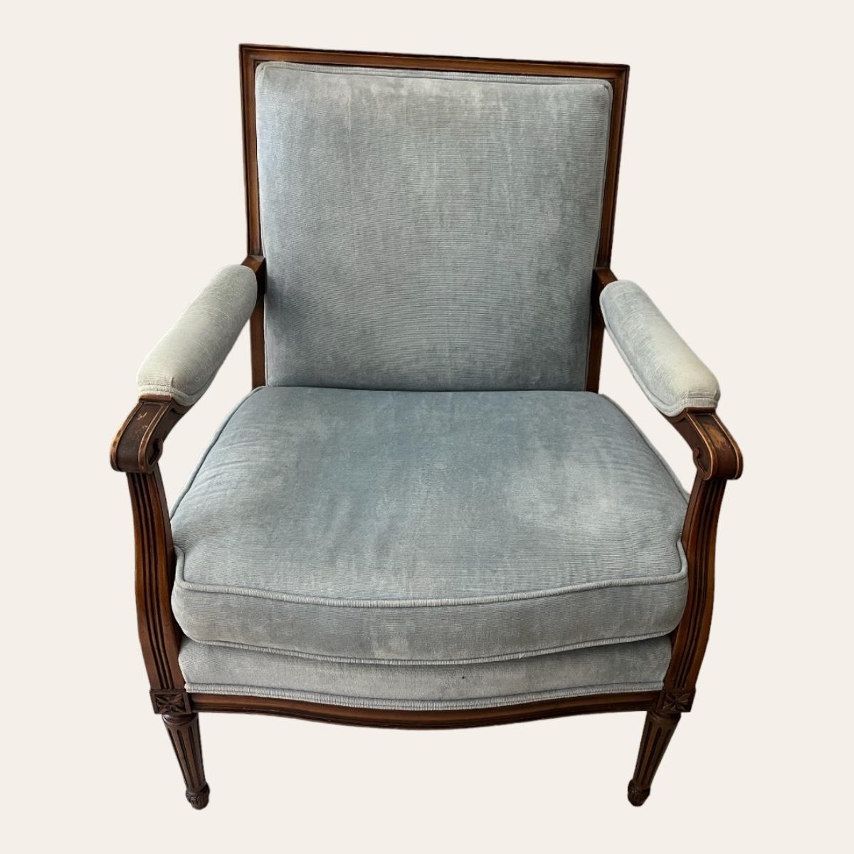 LOUIS XVI STYLE ARMCHAIR WITH BLUE UPHOLSTERY