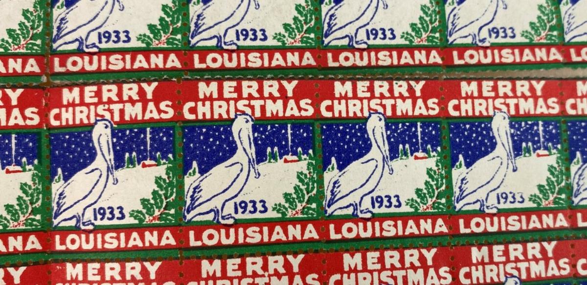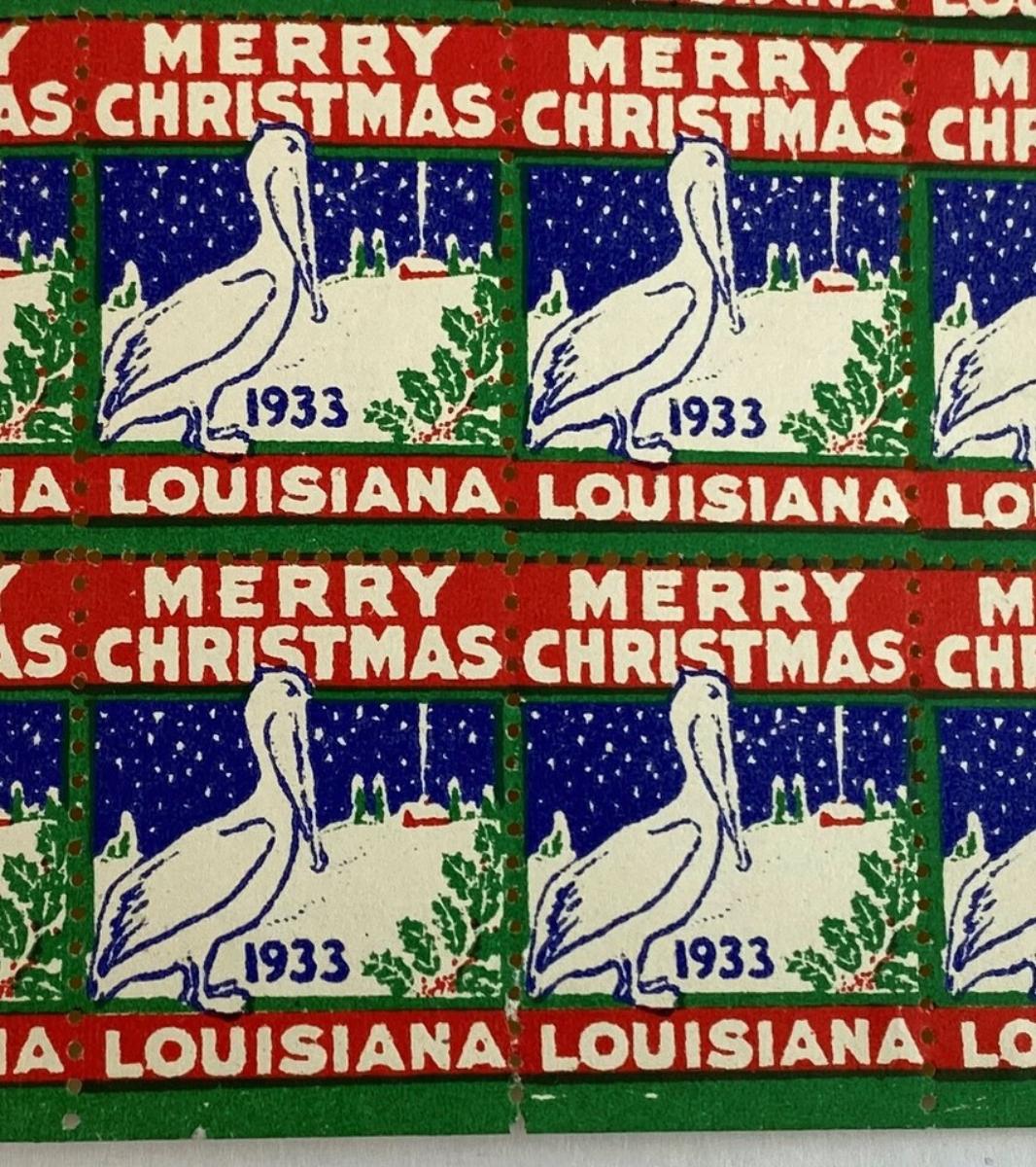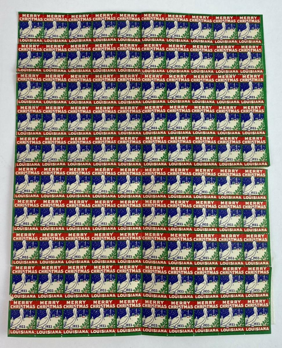 an unused sheet of Christmas seals or charity stamps from the Louisiana Anti-TB League for 1933...The sheet is unhinged but has been folded..retains wax paper back...I believe these charity stamps were issued by the Anti-Tuberculosis League in New Orleans from 1928 to 1940.