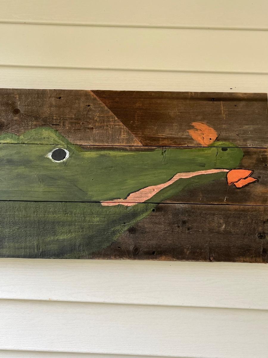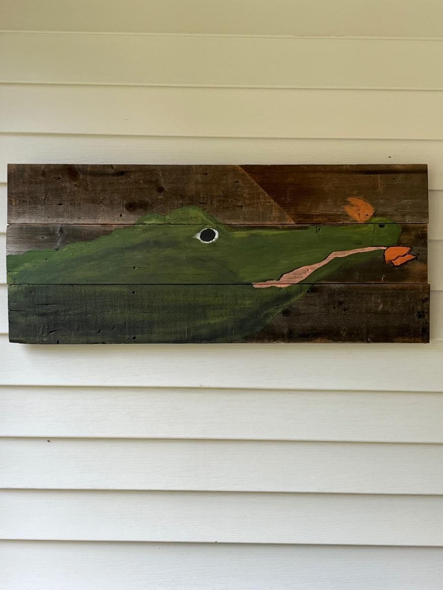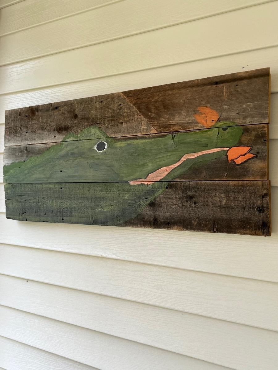 Louisiana Art~ Alligator With Crawfish Hand Painted on Barnwood