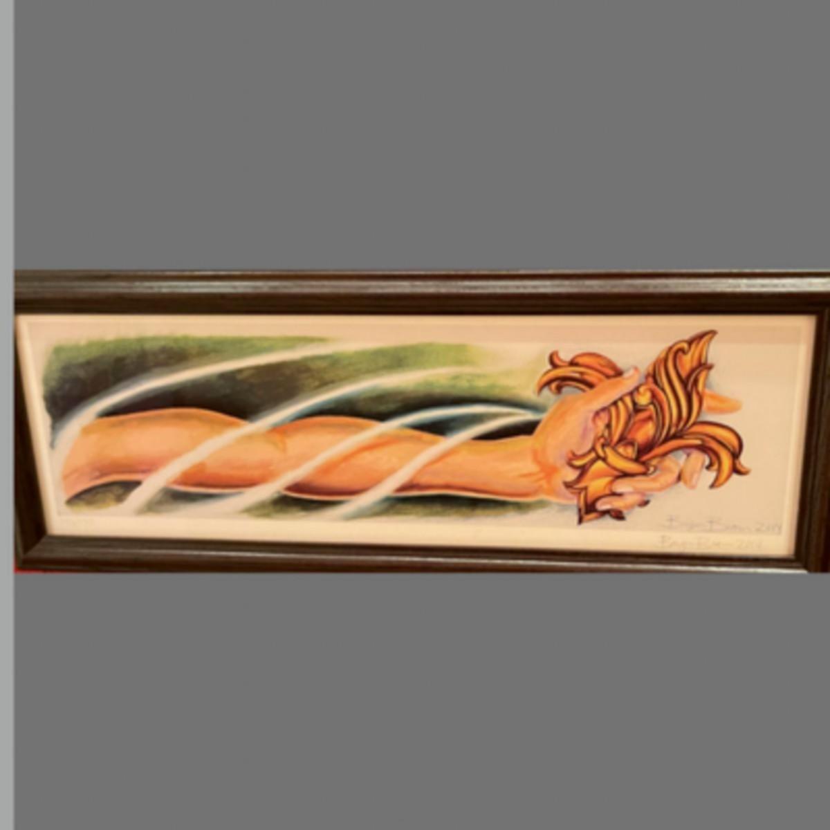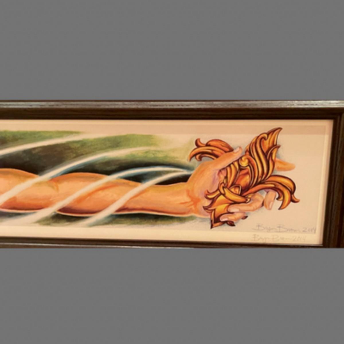Bryan Brown is a painter, born and raised in New Orleans. His work focuses on New Orleans culture, random but beautiful moments and his, and sometimes others', philosophy. Most of his work is predominantly in acrylics and charcoal. This piece has a double signature on it.