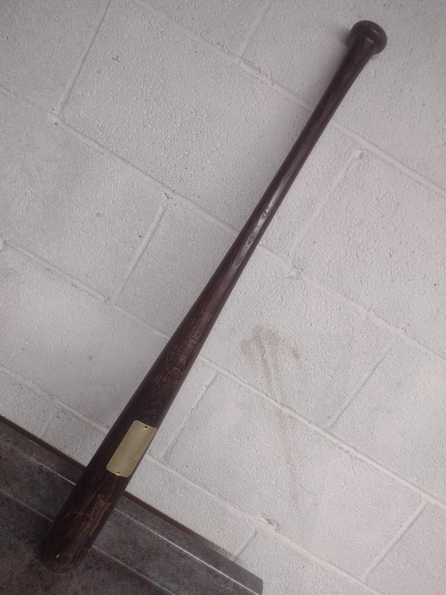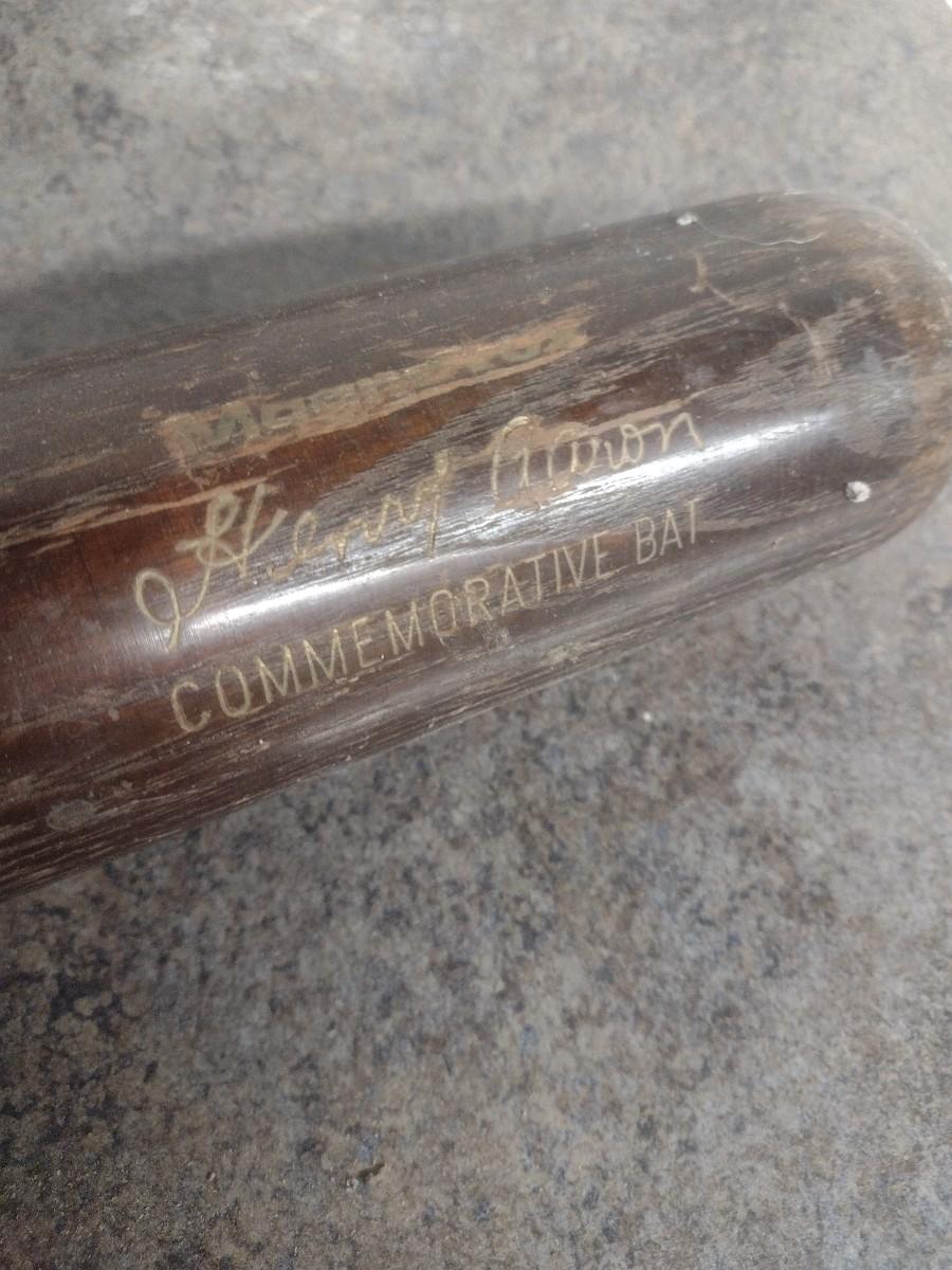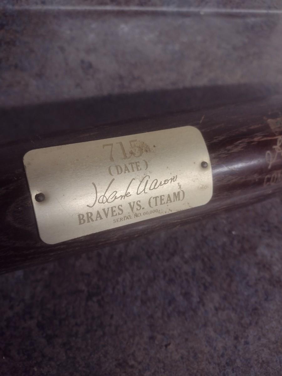 Vintage Hank Aaron Louisville Slugger Baseball Bat with Blank Home Run Count Badge