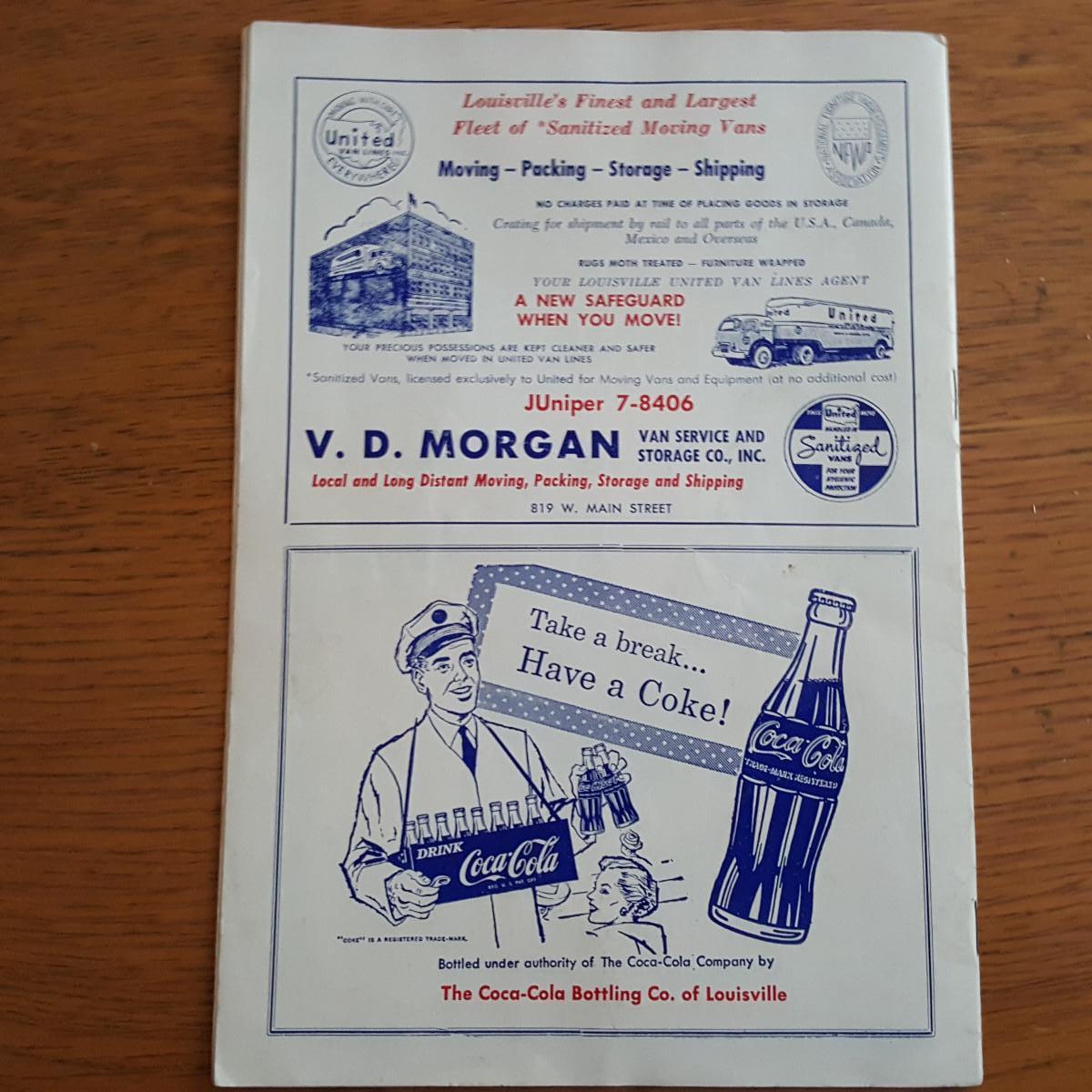 This auction lot is for a copy of the Official Baseball Scorebook Program of the Louisville Colonels Baseball Team at Fairground Stadium. The program which is in good condition with minor creases and spots bears no date - but does mention being affiliated with the American Association making this a program from the 1957 - 59 era. Fun advertising from Coke, Fehr's & Oertel's Beer inside.