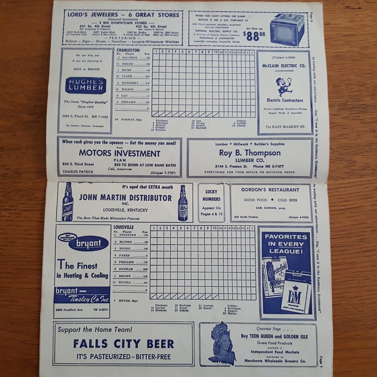 Louisville Colonels Baseball Scorebook Program at Fairground Stadium