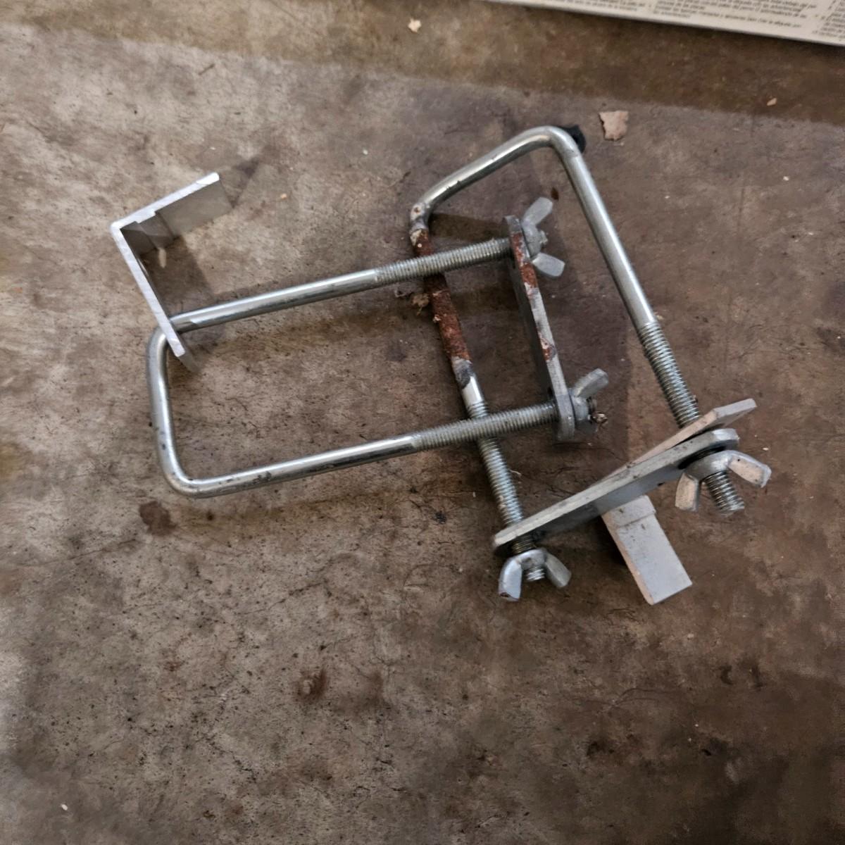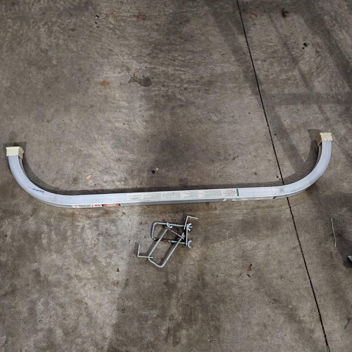 An aluminum 20' Louisville extension ladder that also includes an aluminum extension bar and hardware. Lot also includes a fiberglass an aluminum Gorilla A frame 6' ladder. Local pickup only