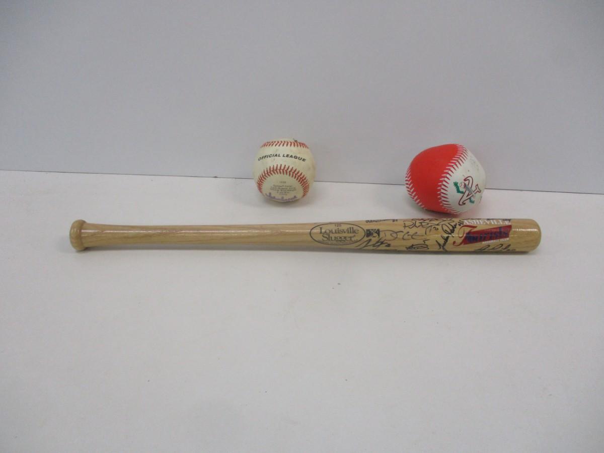 Louisville Slugger Asheville Tourists Baseball Bat Signed & Signed Baseball