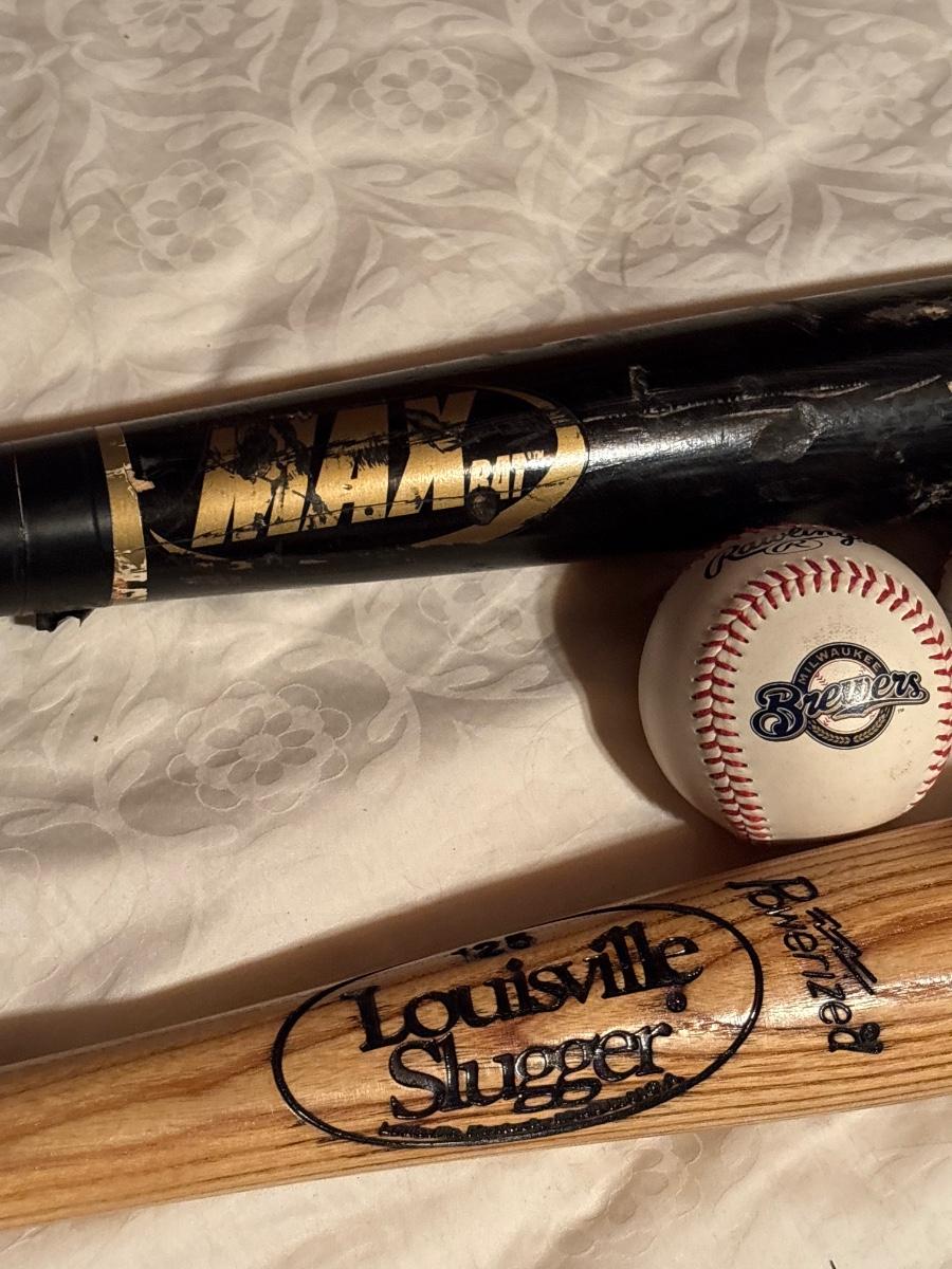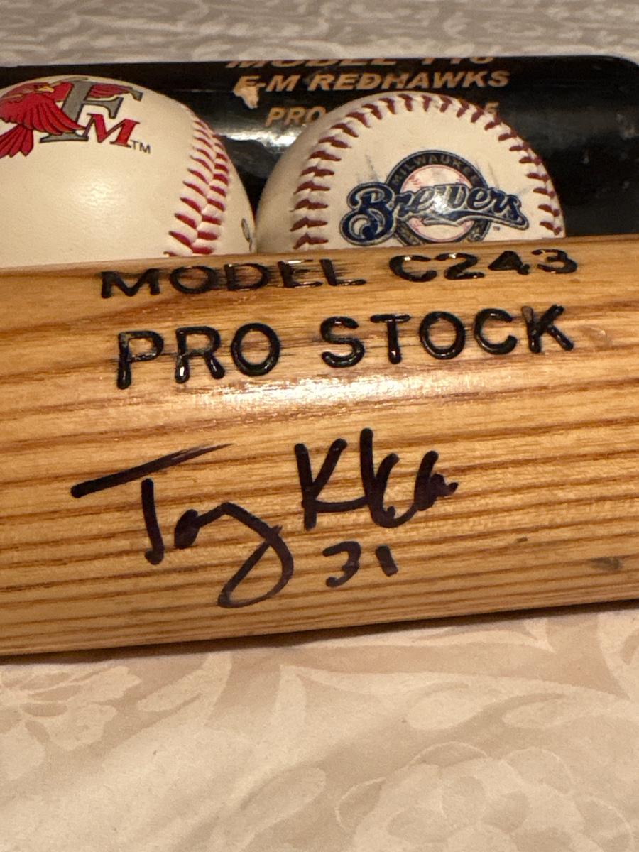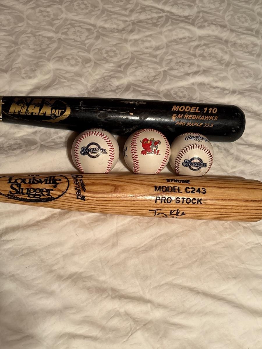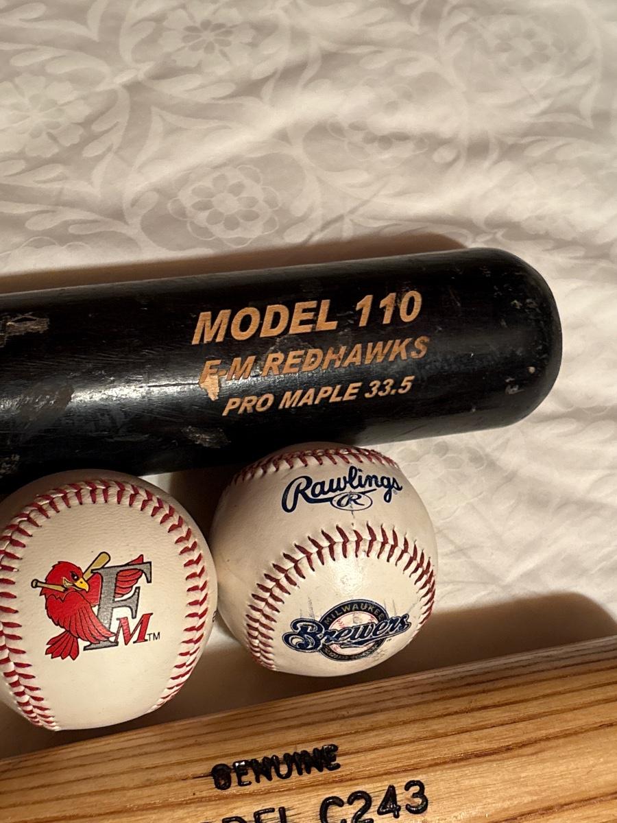 Louisville slugger model C243 signed, FM Redhawks bat & balls