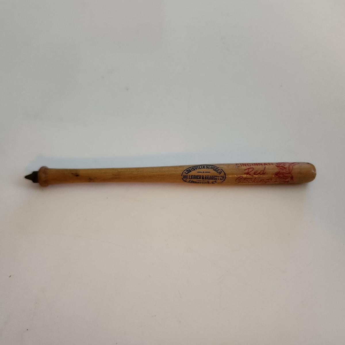 This auction lot is for a Louisville Slugger Pen with the Old Cincinnati Reds Logo. The logo actually say Cincinnati Red Stockings. Nice vintage item - where you gonna find 'em. See photo for size.