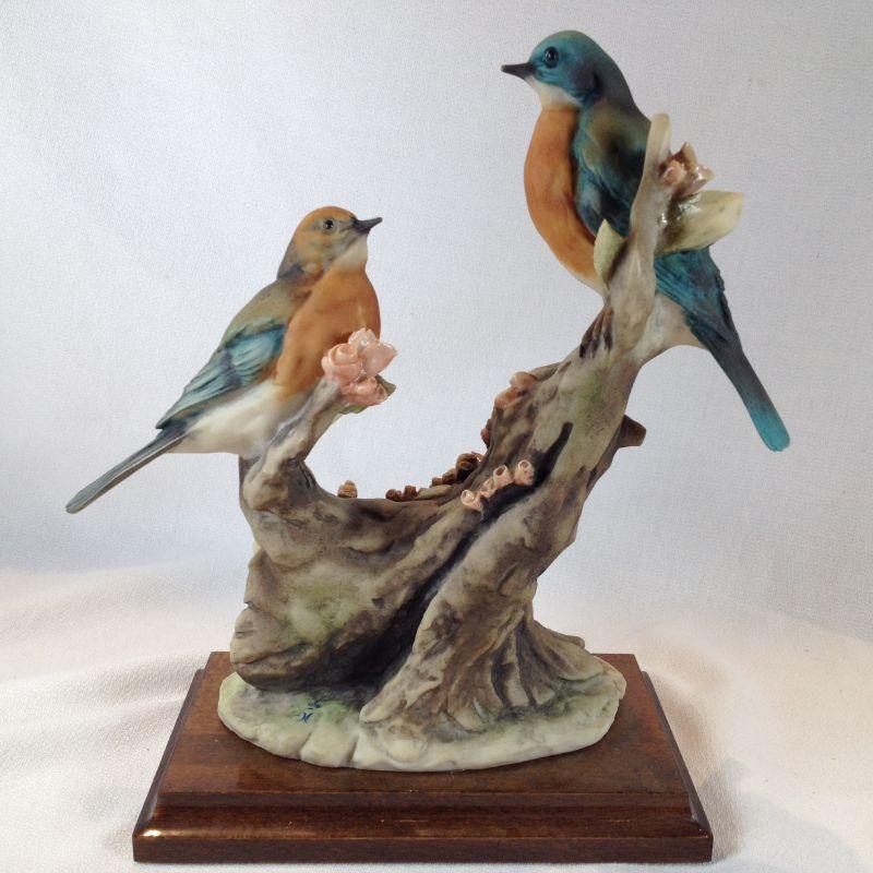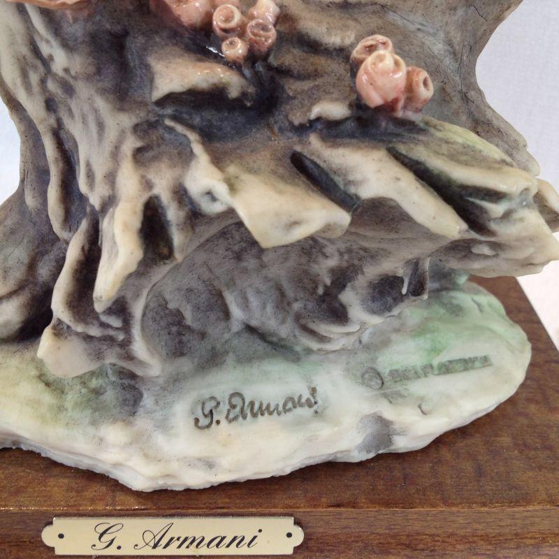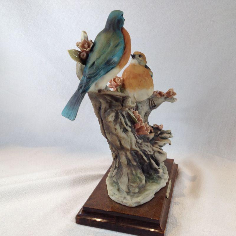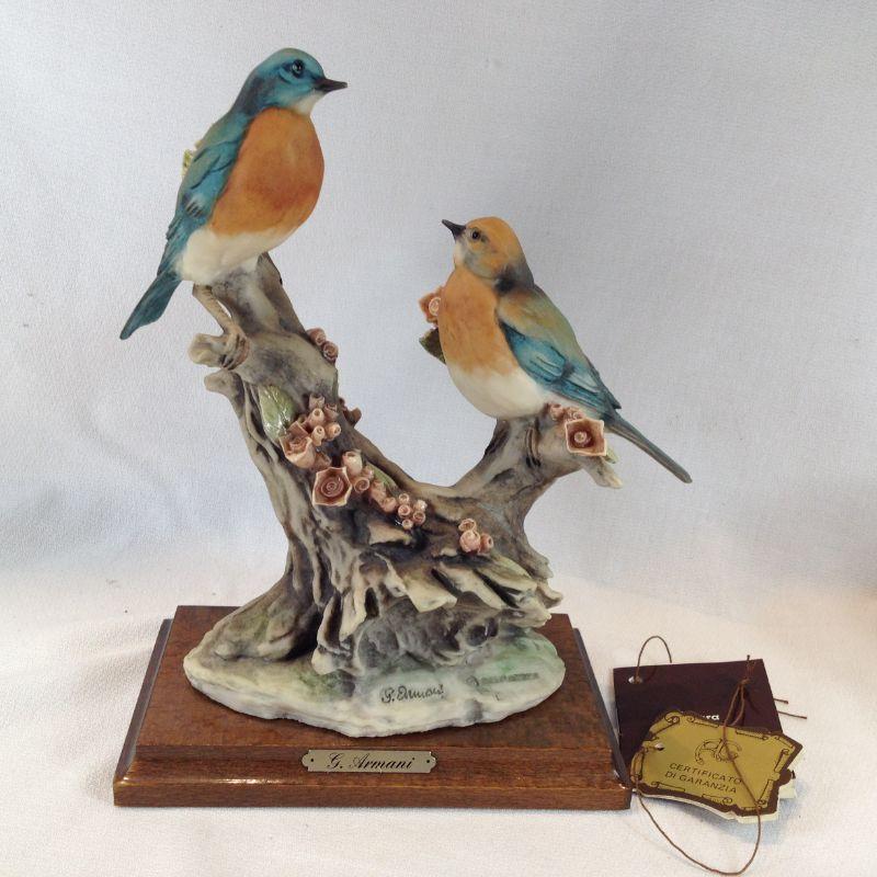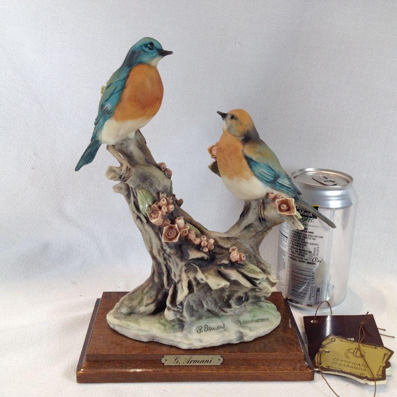 This is a Capodimonte bird sculpture - Love Birds on a Branch by G. Armani. Made in Italy. Limited Edition. It measures 8 3/4-inches tall X 8 1/2-inches long. It is in very good condition. We will ship but will not guarantee the safe arrival - it is a delicate piece. Reserve/Starting Price is $15.