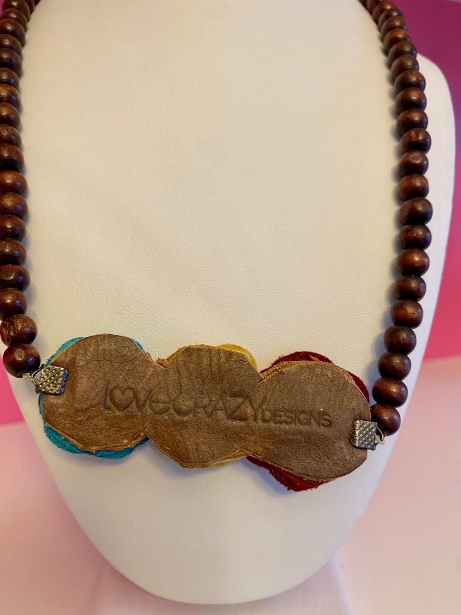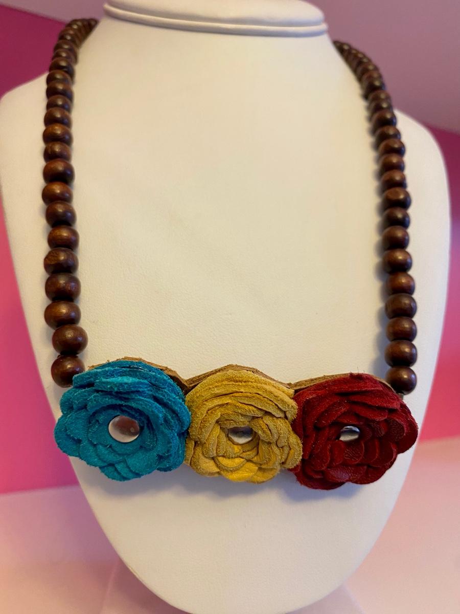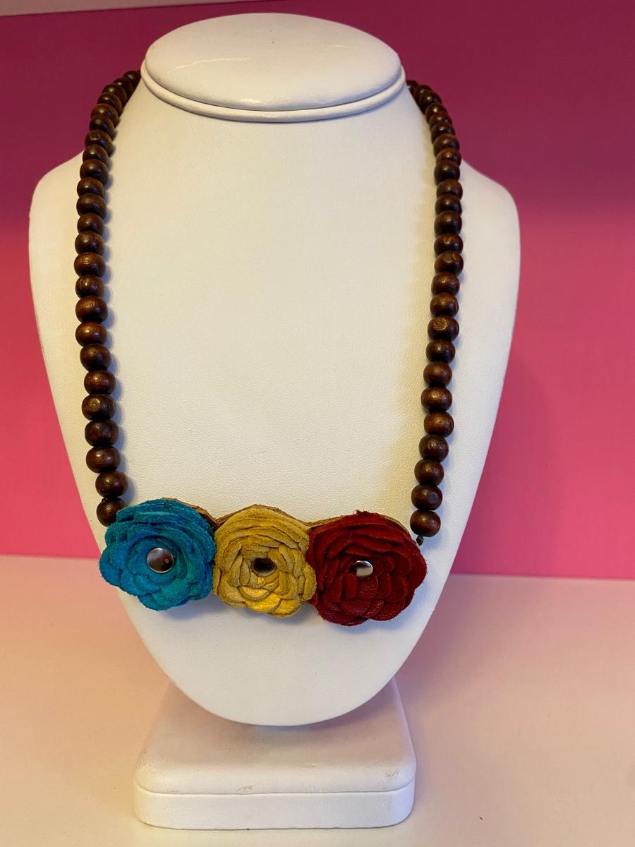 Love Crazy Designs Three Flower and Wood Bead Necklace