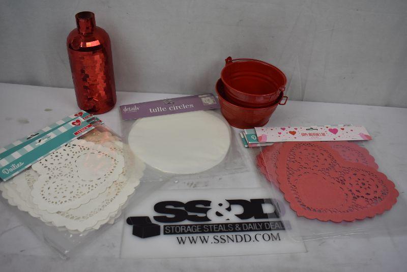 Love Decor, 15 packs of Valentine's Heart Doilies, 2 Tin Tubs, 1 Red Vase Decor