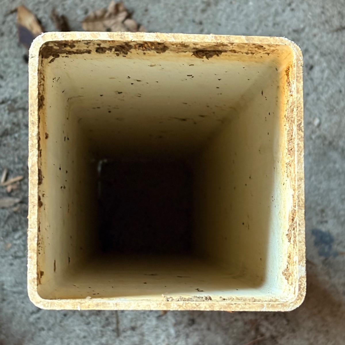 Artistic garden birdbath with metal basin and square PVC pole base. Garden appropriate words surround the base. Item measures 18" D x 30.5"H. See photos for details. Shipping available.