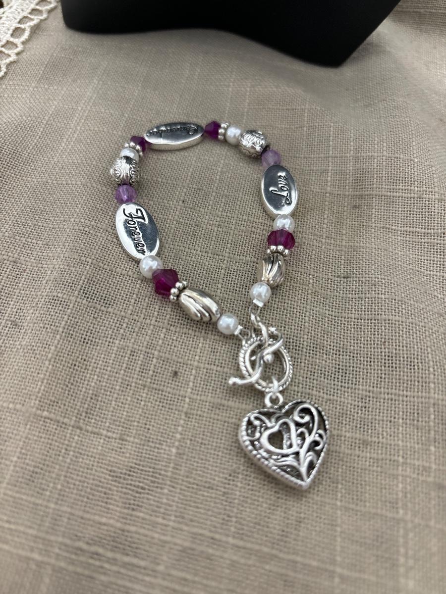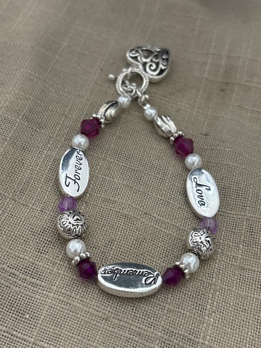 Love remember forever purple beaded bracelet