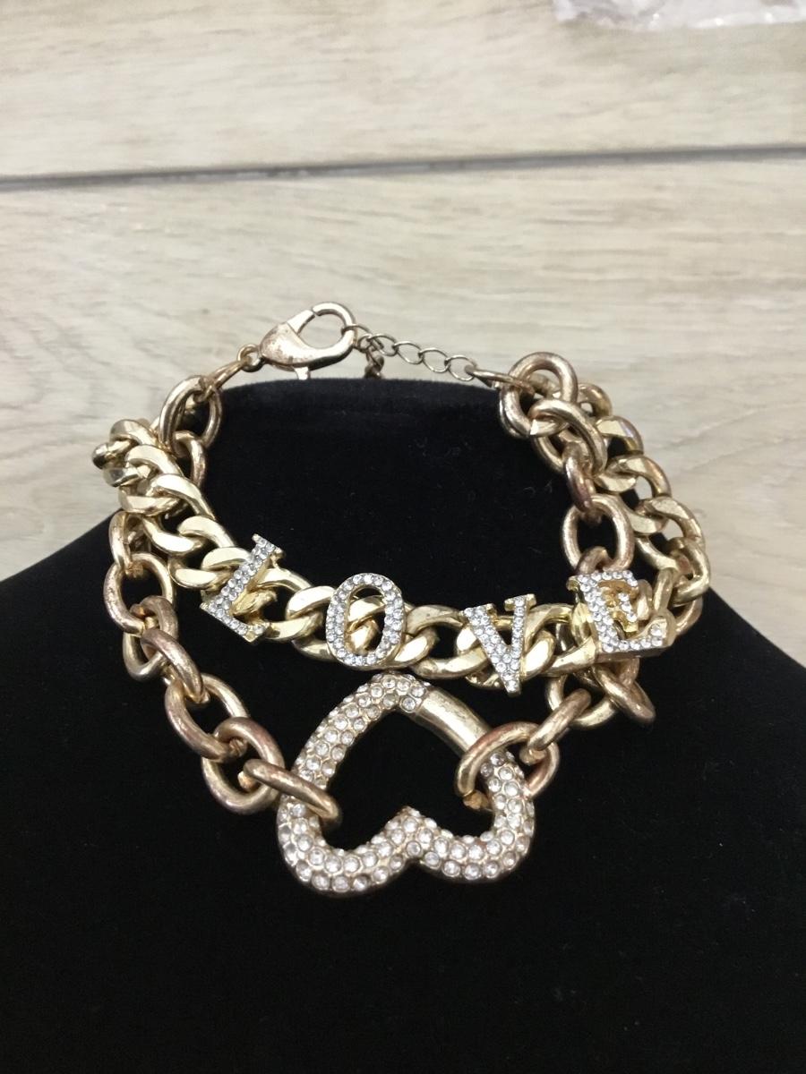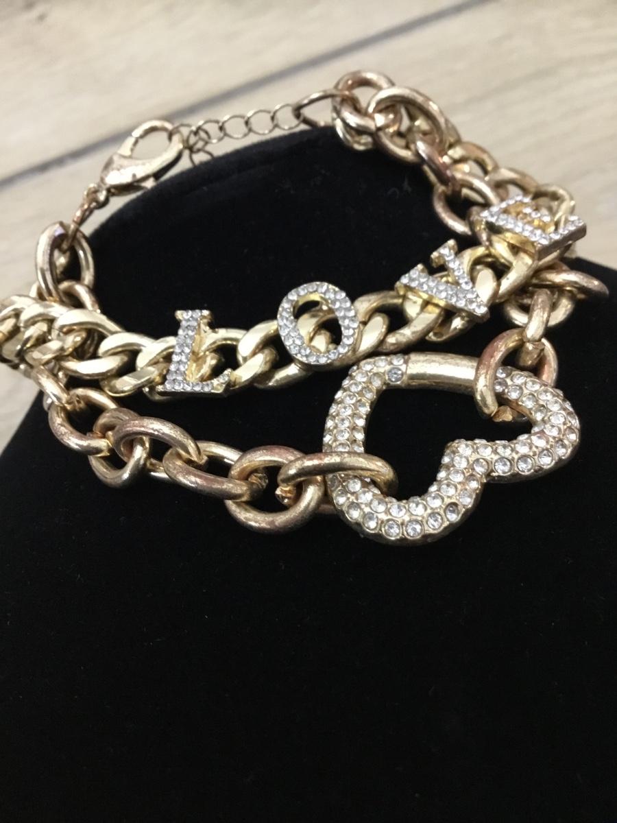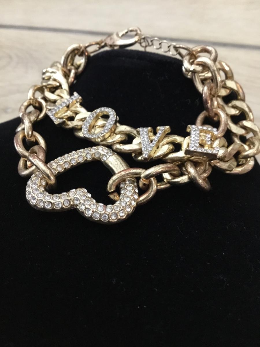 Love rhinestone gold tone chain type bracelet