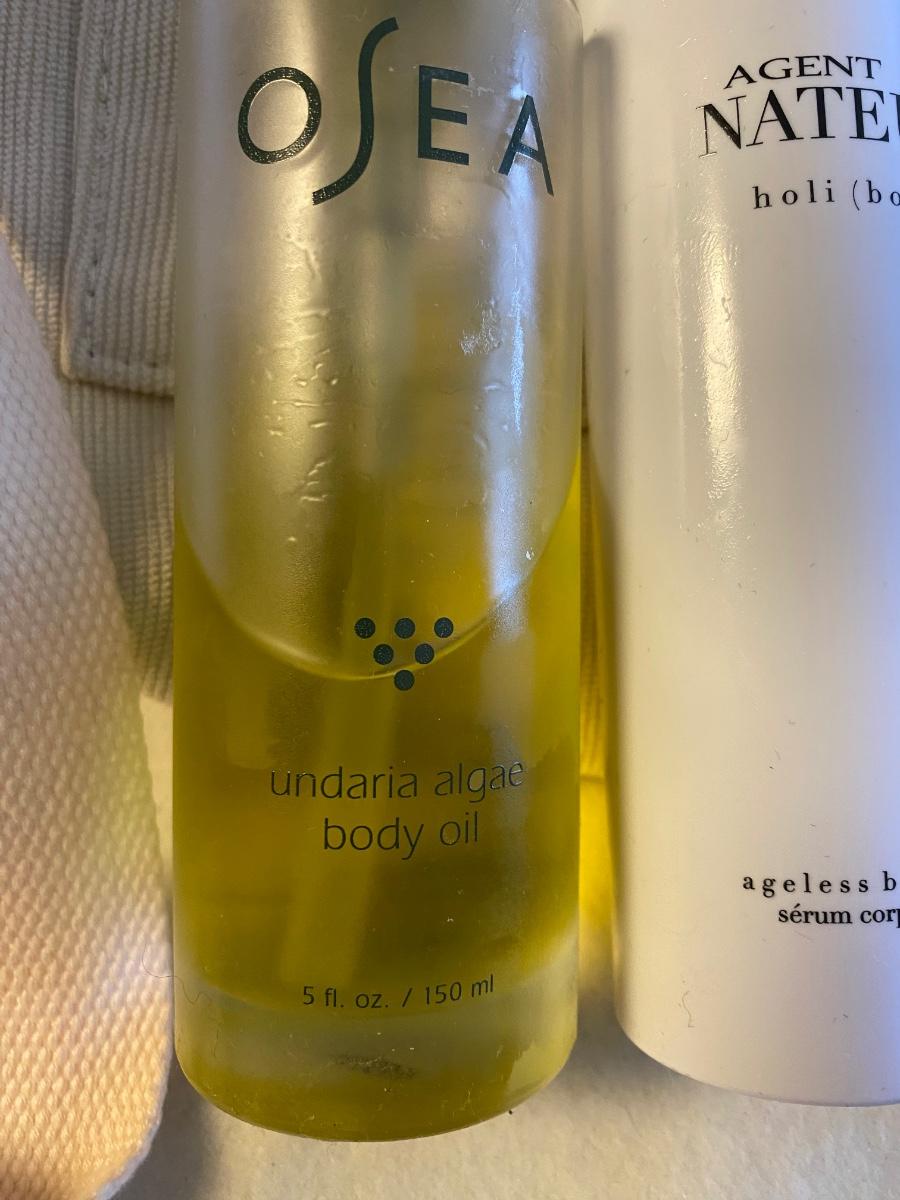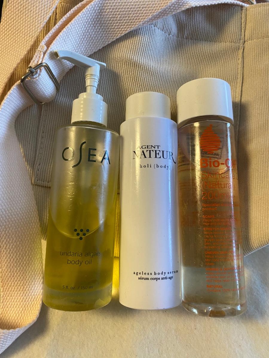 Osea undaria algae body oil, agent Nateur ageless body serum, Bio-oil skincare oil