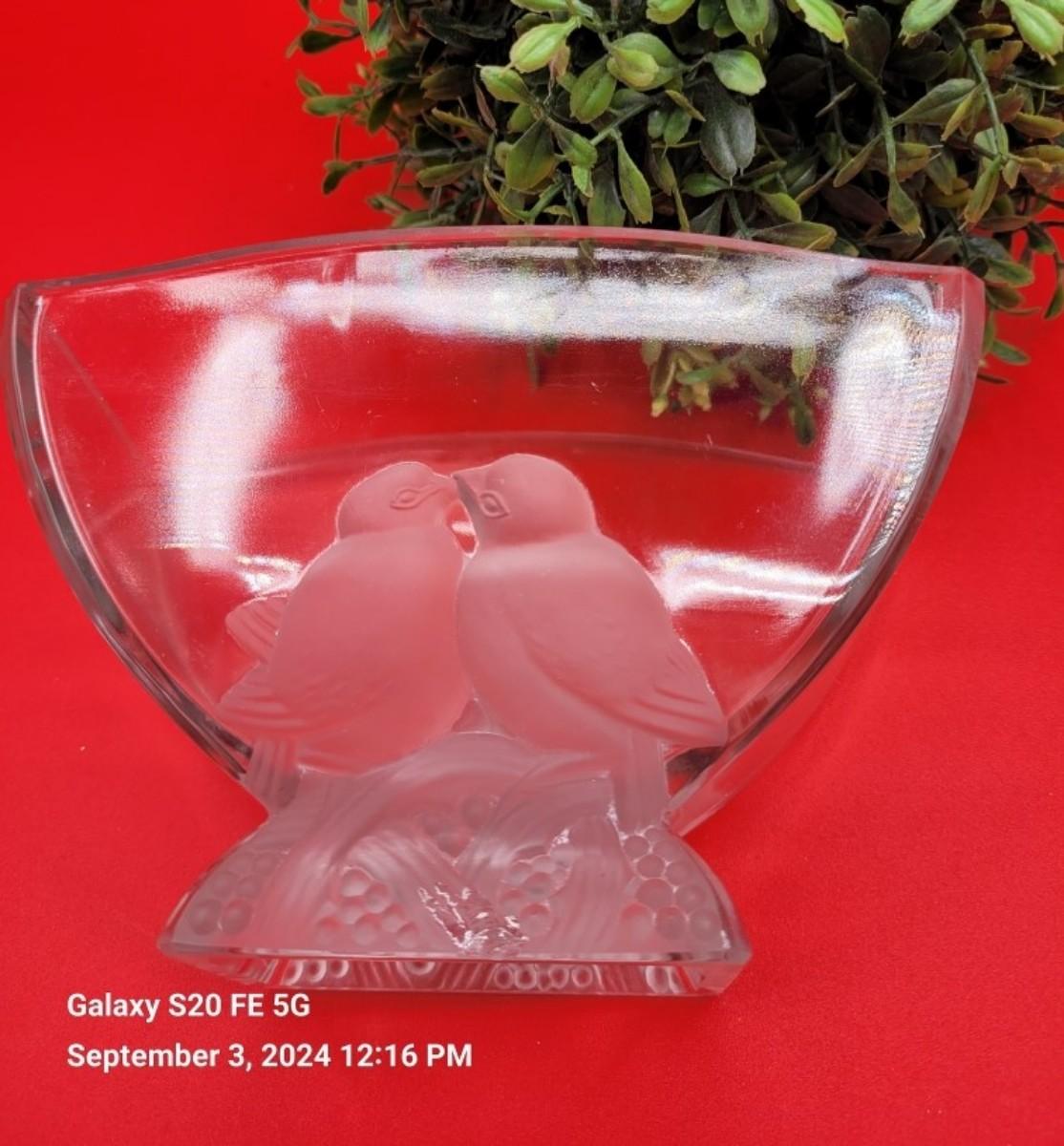 Signed on the bottom. Verlys. Lovebirds in relief on both sides.