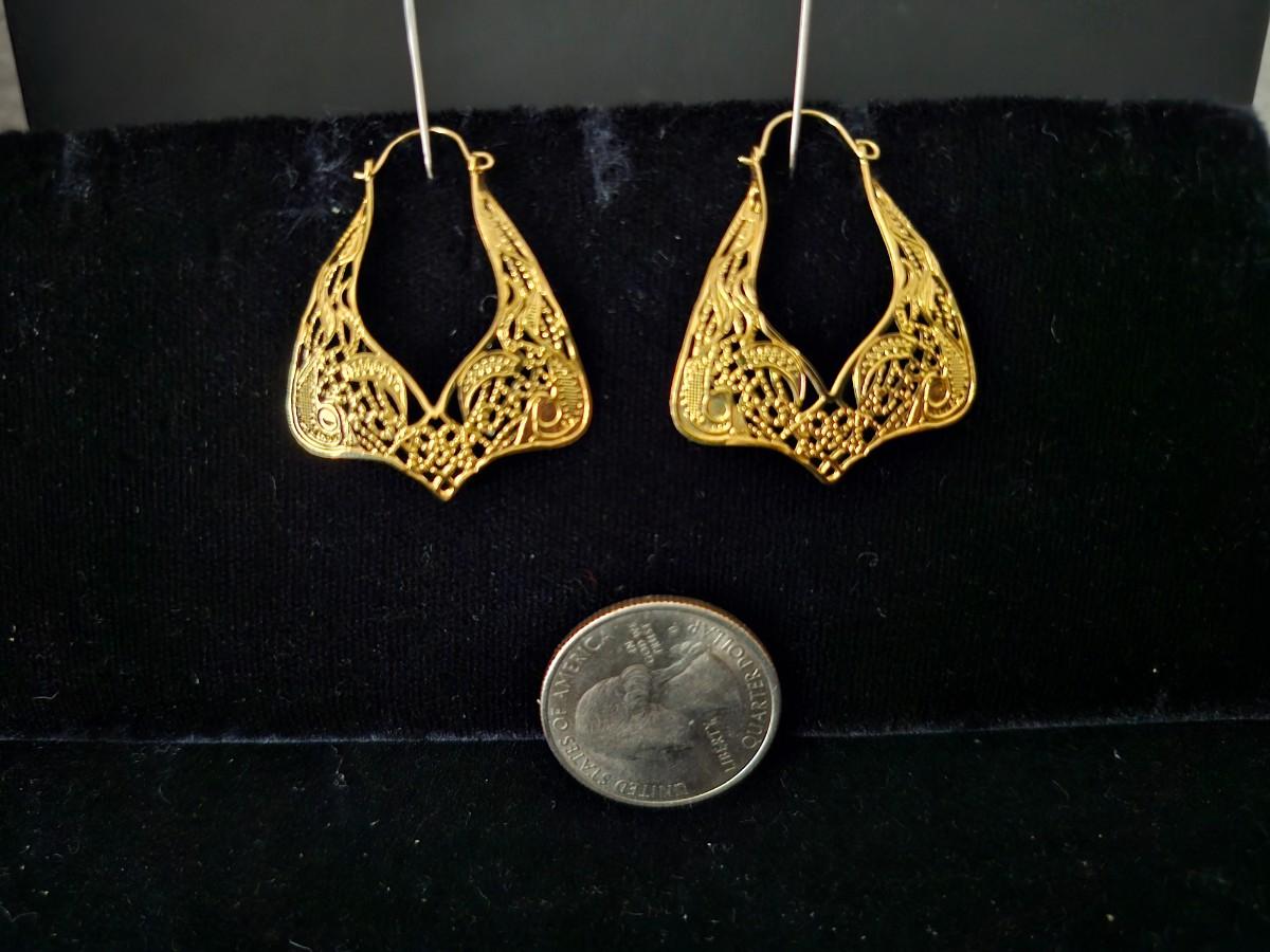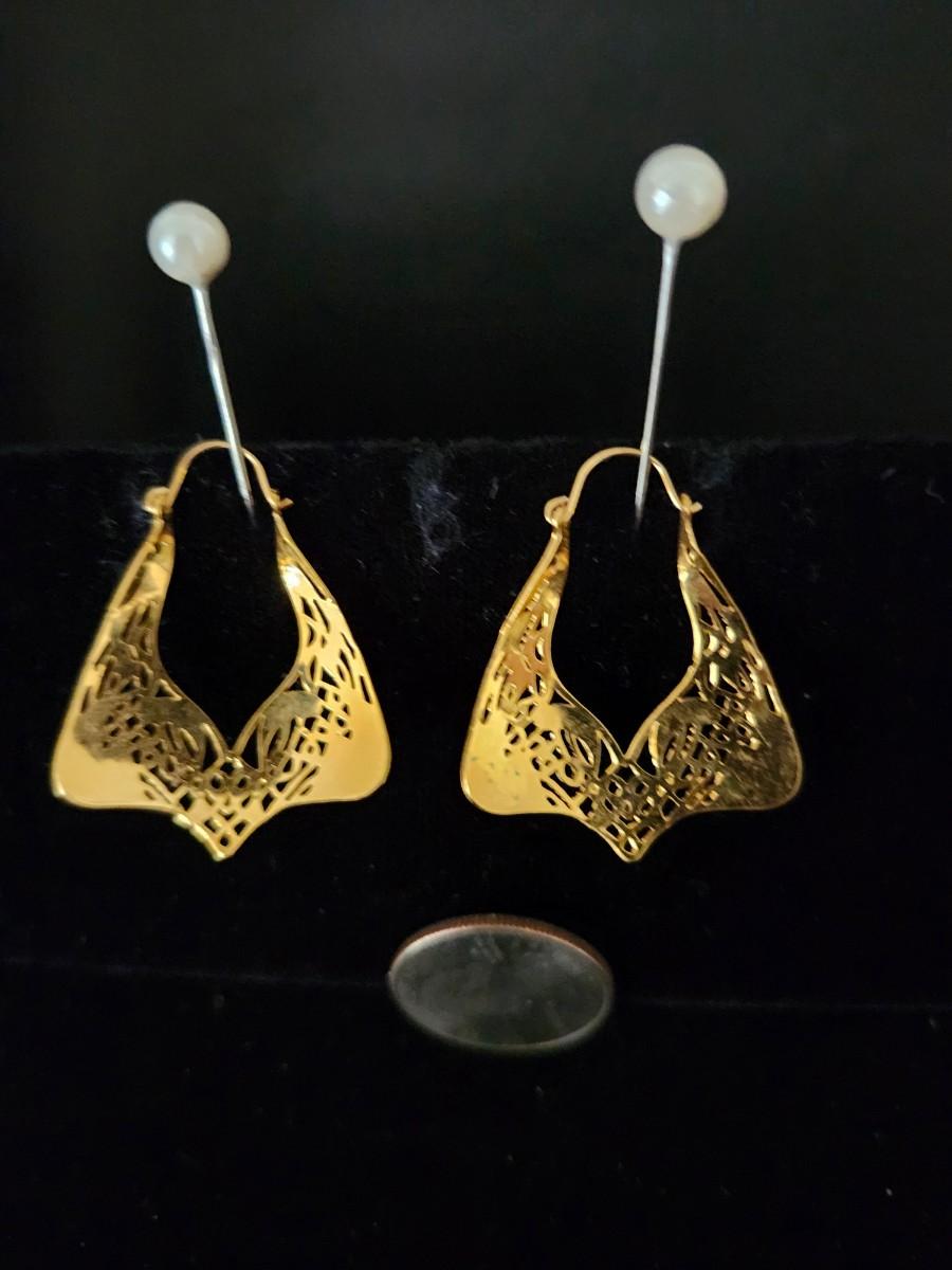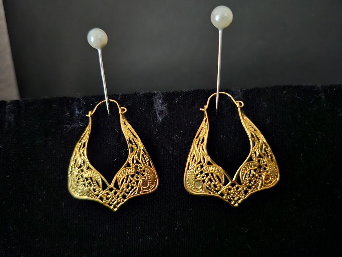 Very delicate looking, very beautiful. Tested 10K gold. Pierced.