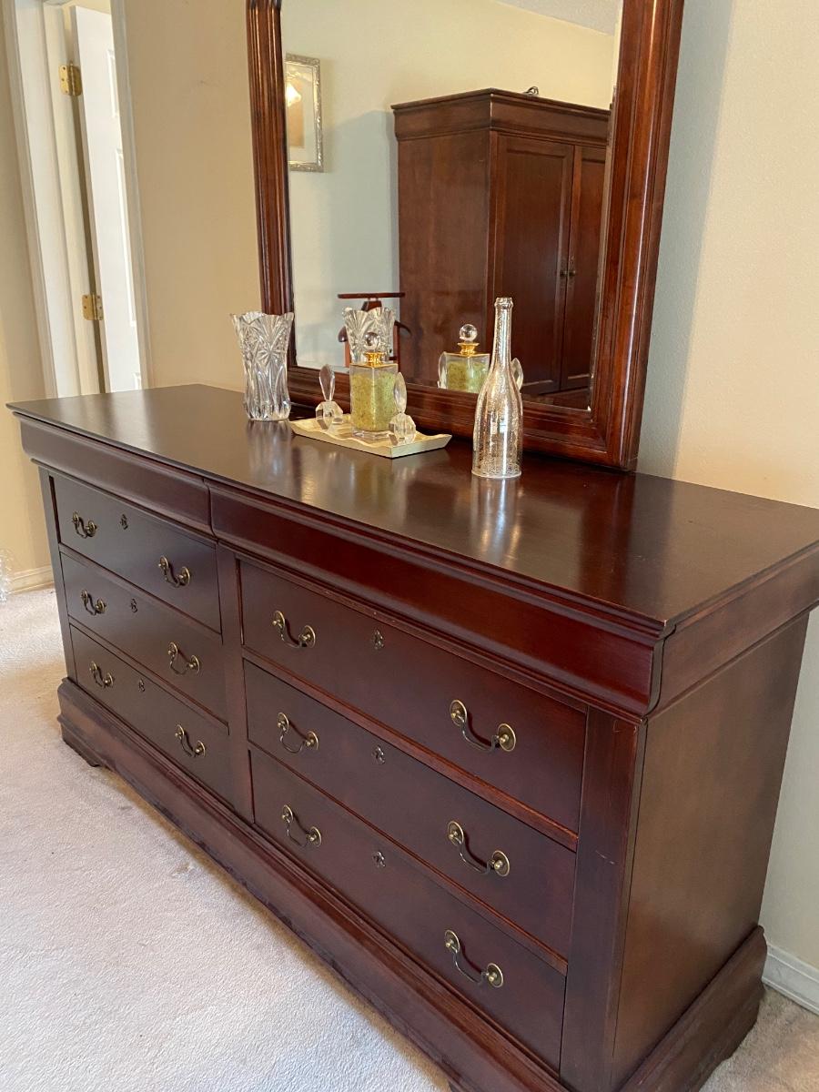 Lovely all-wood double dresser with beveled mirror