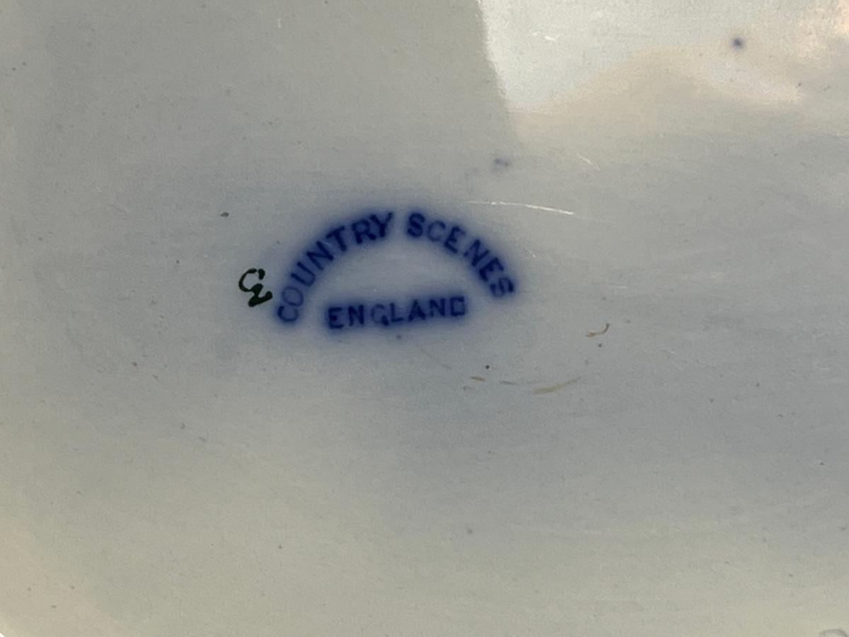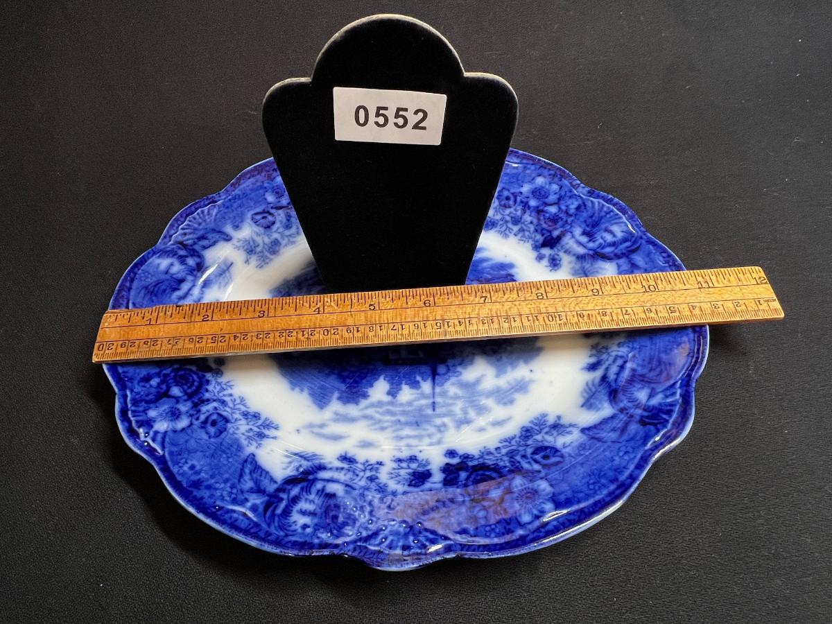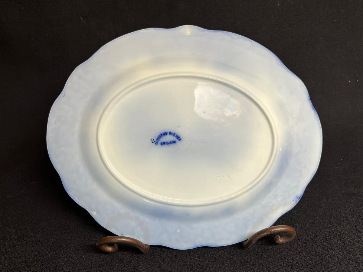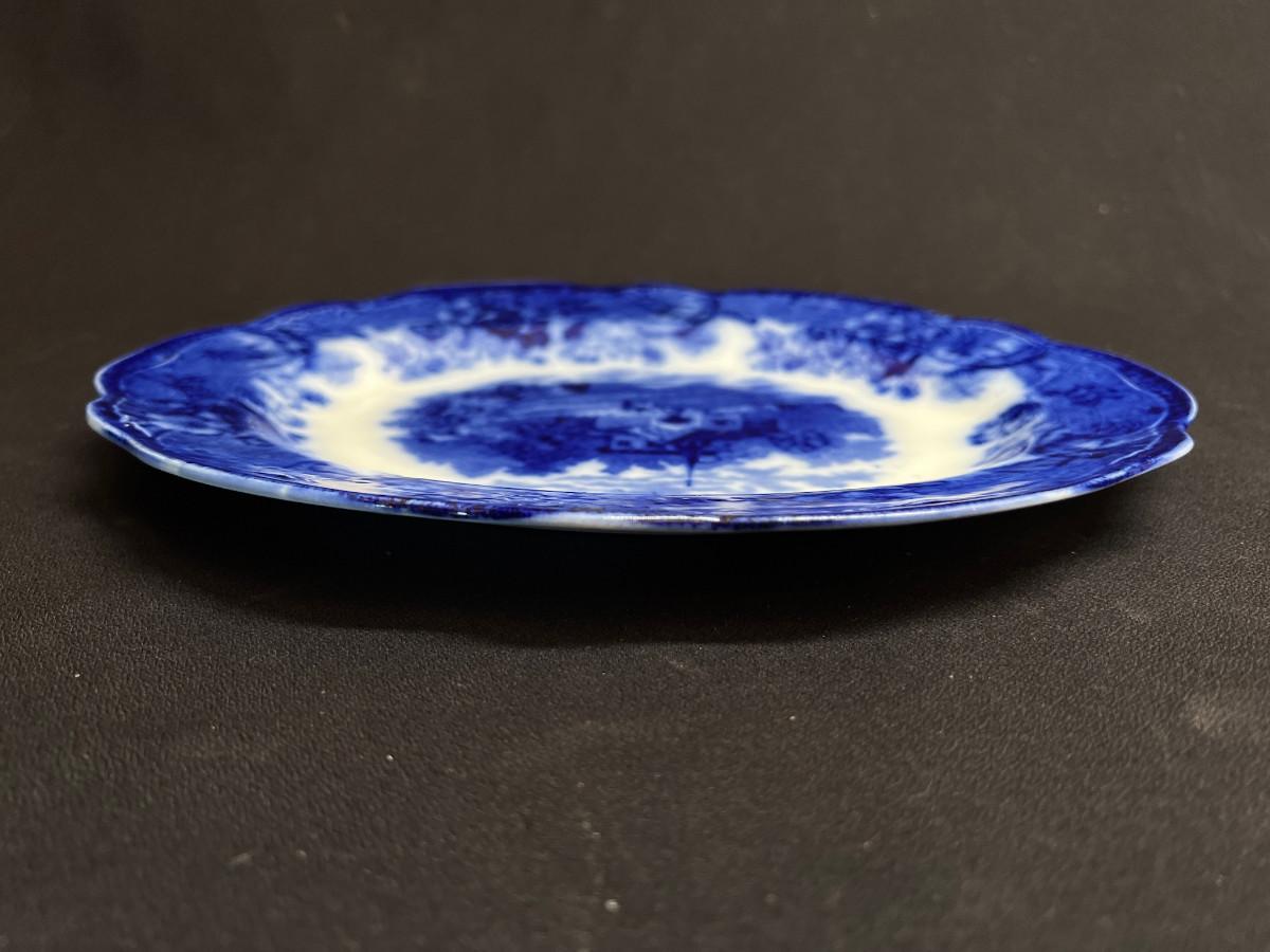 Lovely Antique Flo / Flow Blue Platter Plate Dish Deep Blue Village Country Scene