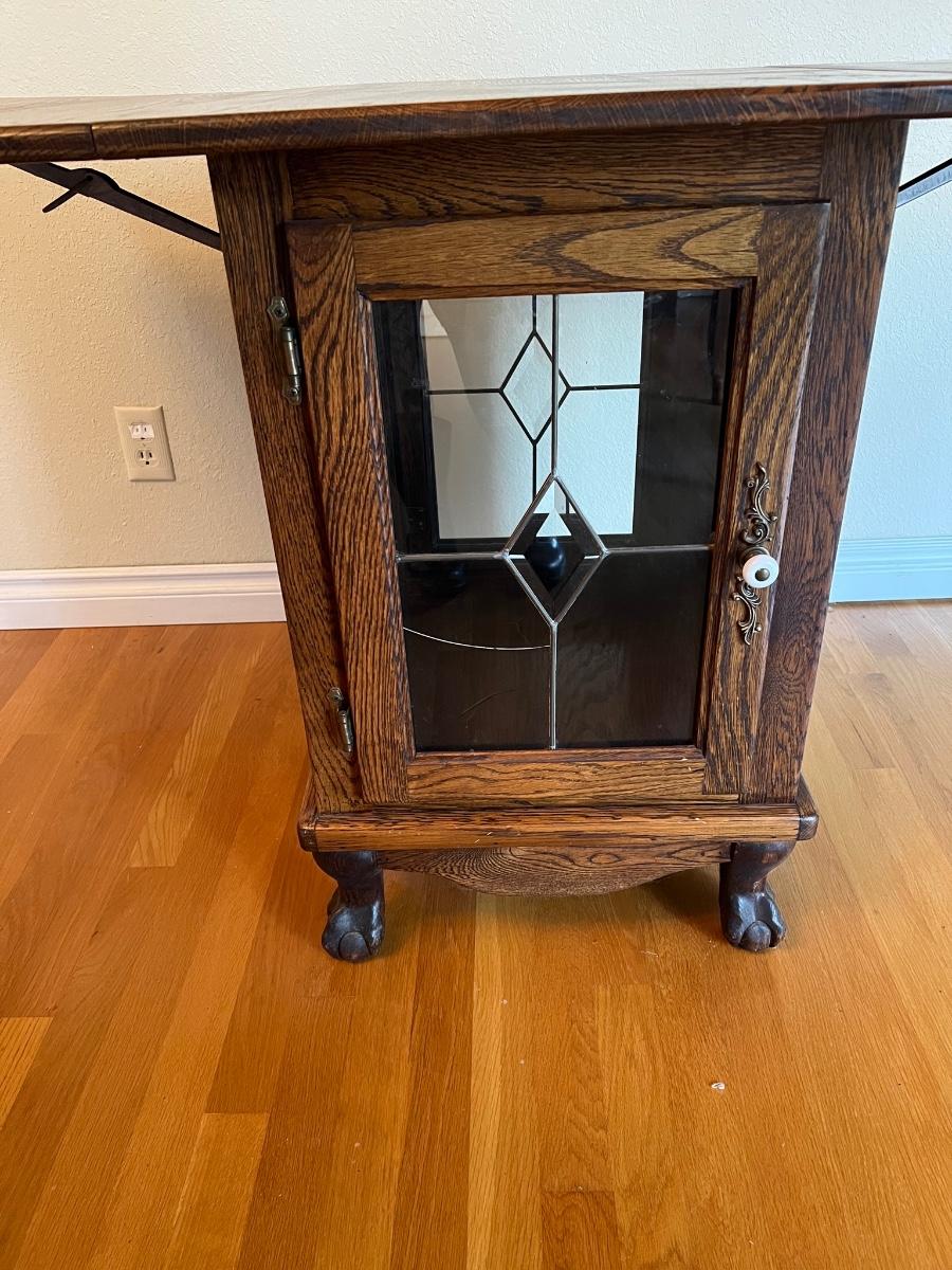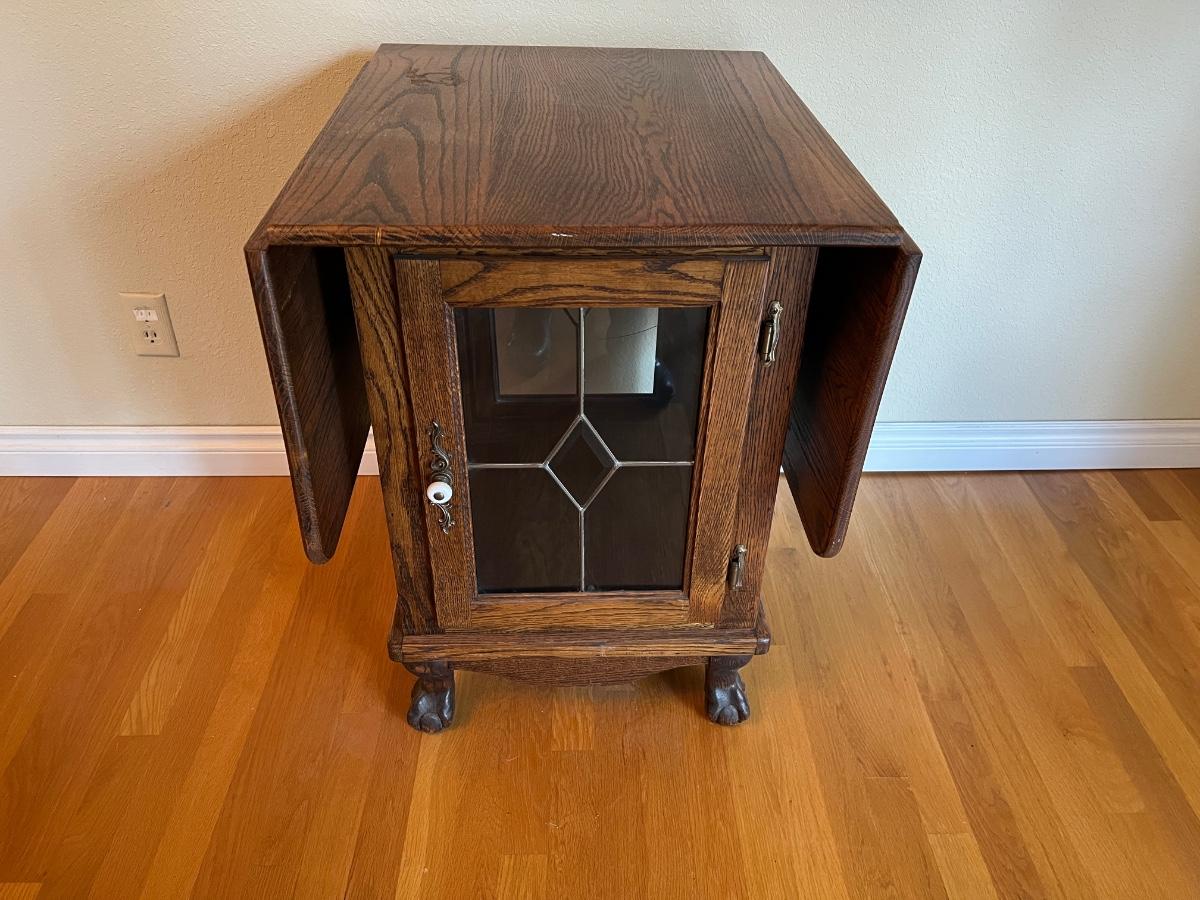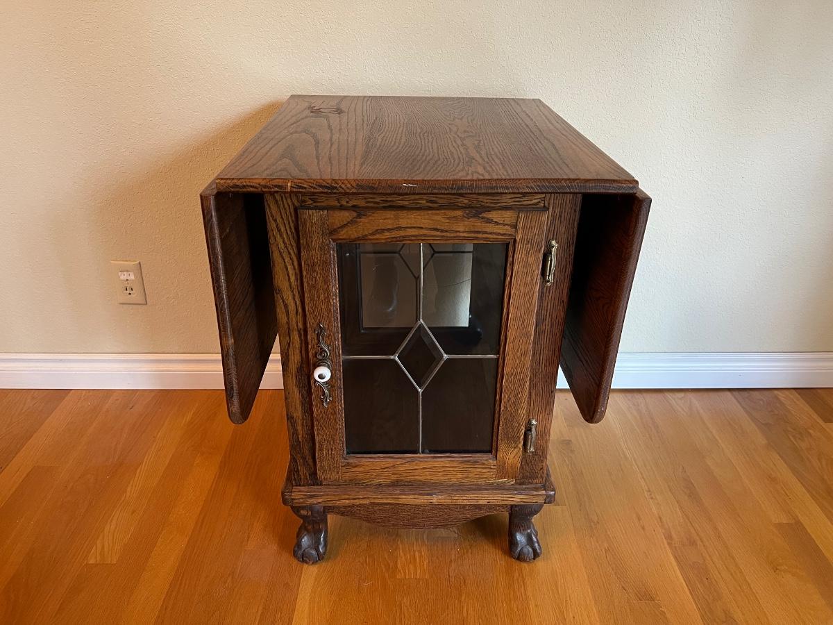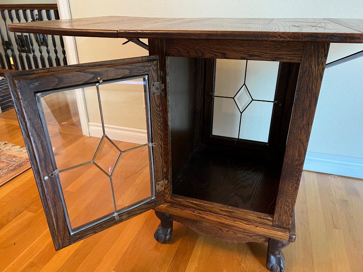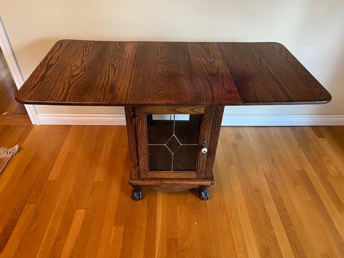 Lovely Antique Rolling Expandable Collapsible Table Cabinet