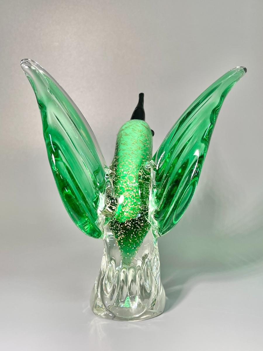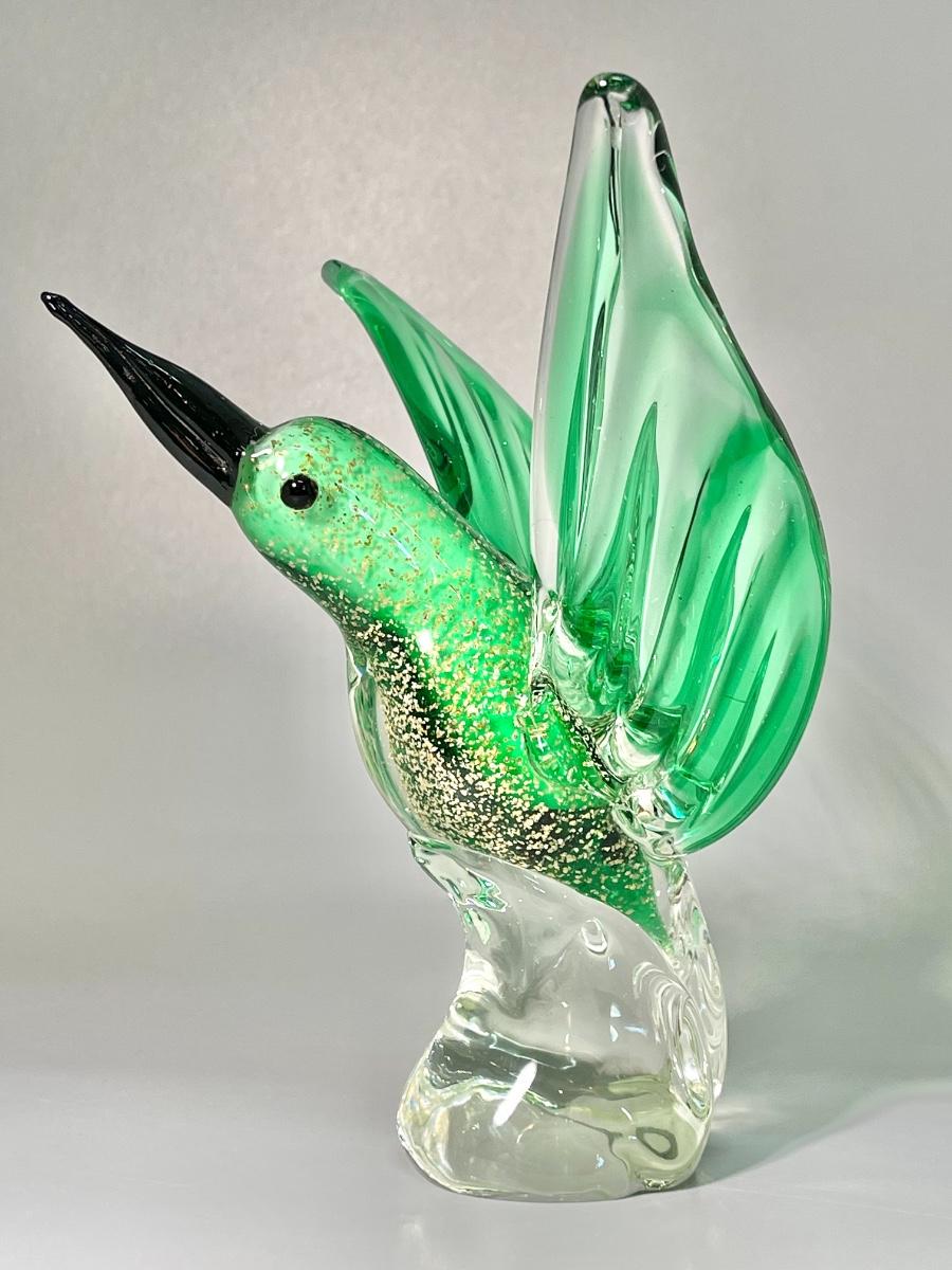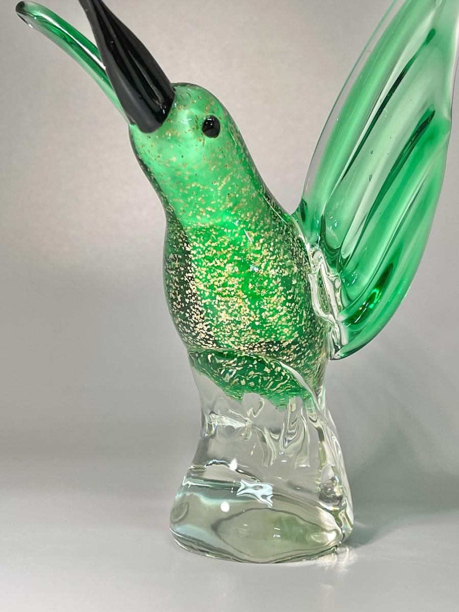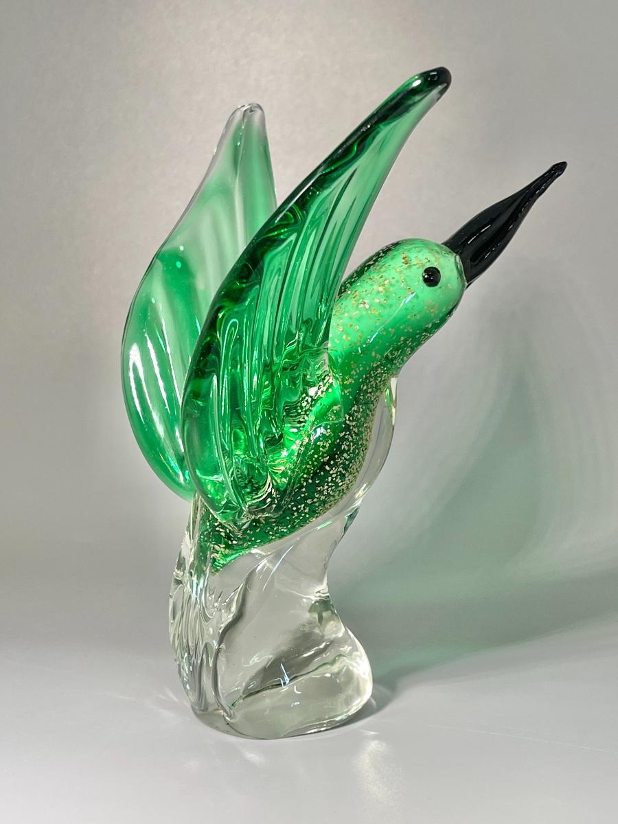 This bird needs a sunny spot to rest and show off all of this color and sparkle. The sun would make these elements dance! Beautiful green color would add such a pretty touch to a windowsill or table.