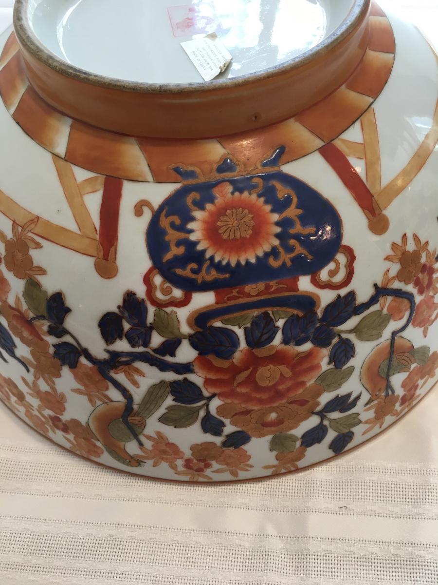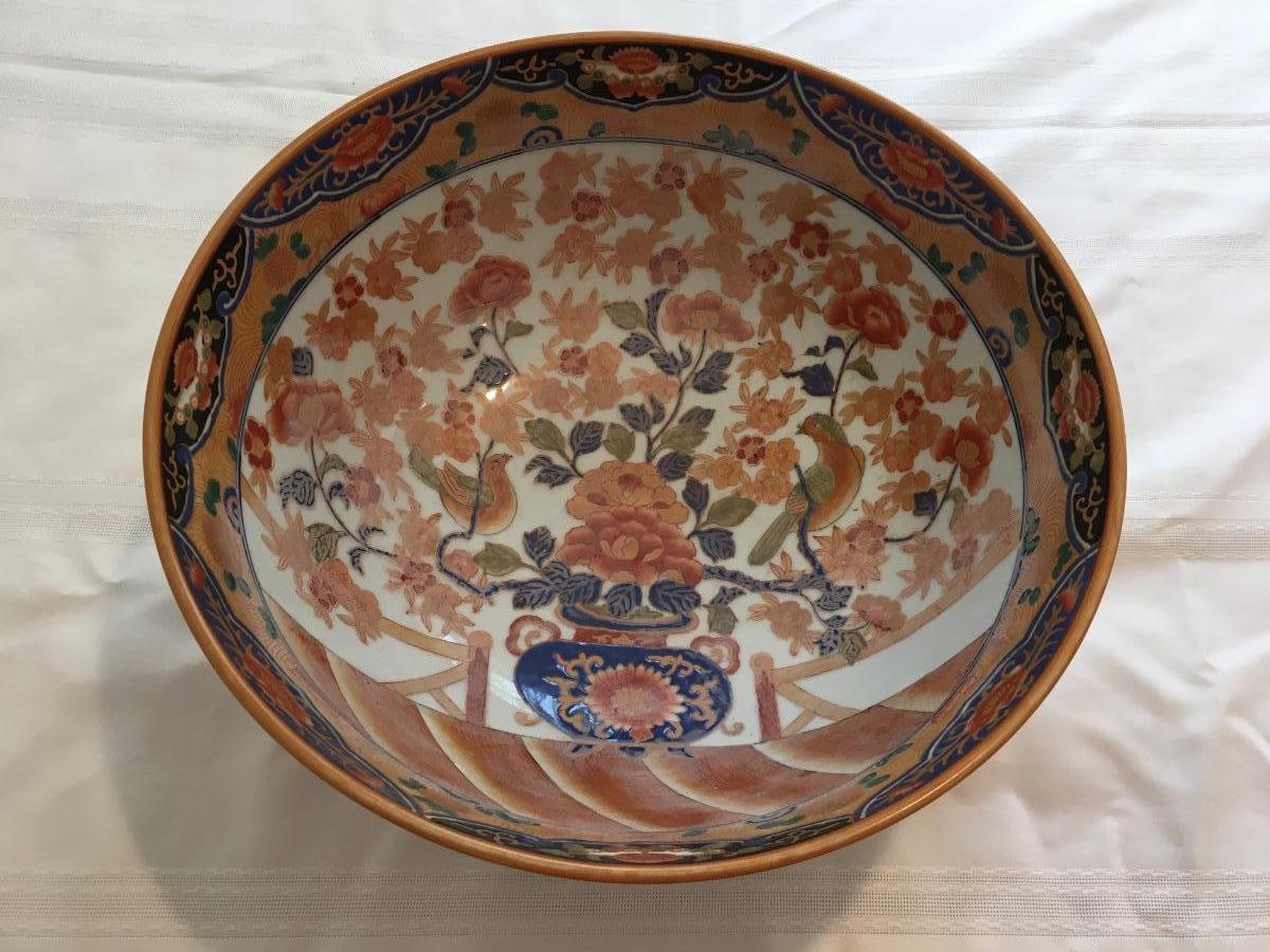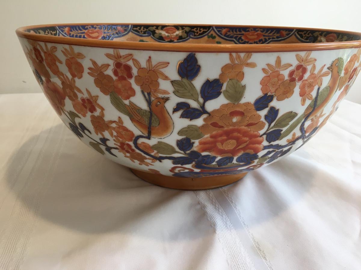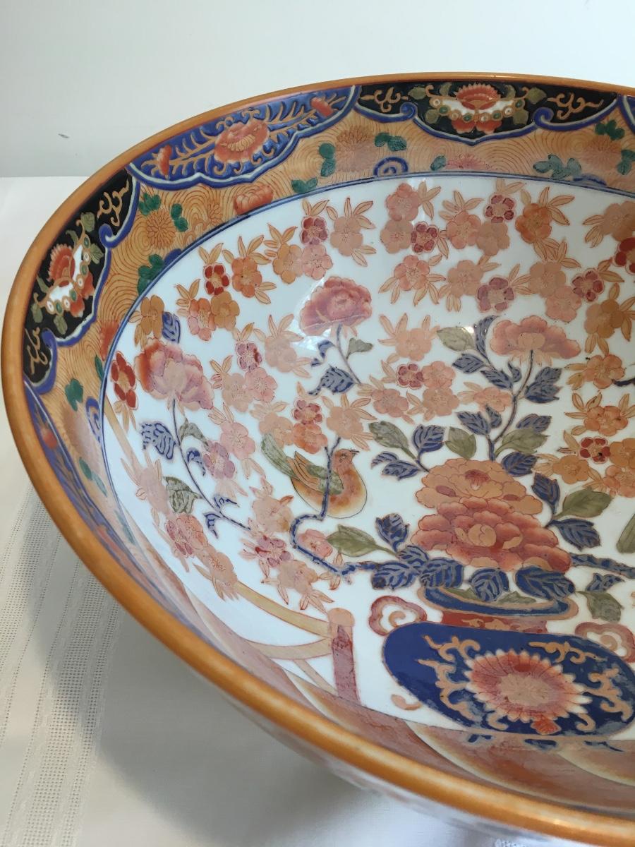Large bowl with beautiful design. Makers mark on bottom. Excellent condition.
