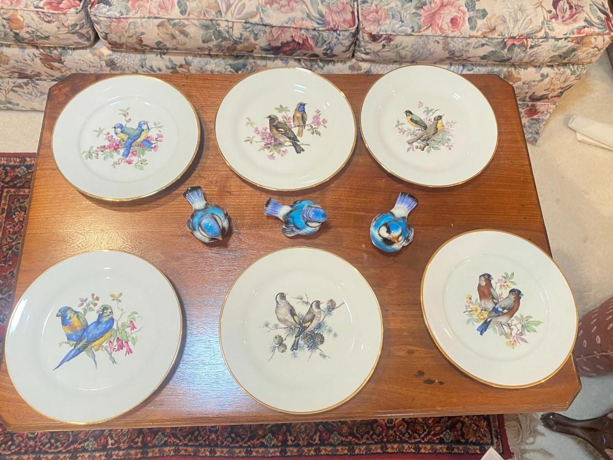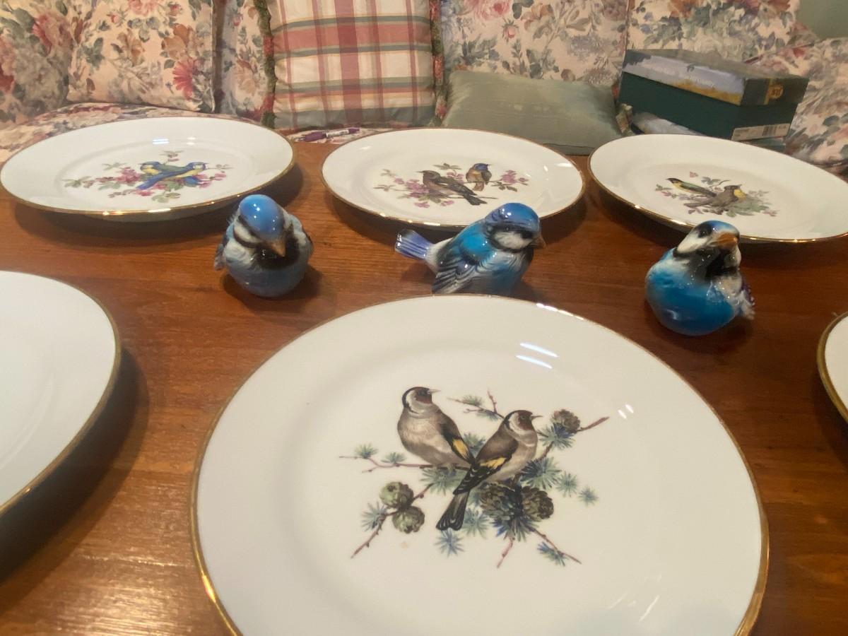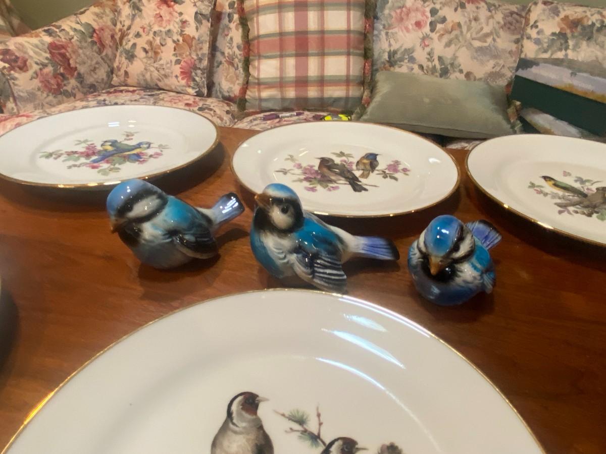 JWK FINE PORCELAIN PLATES FROM W. GERMANY AND 3 GOEBEL BLUE BIRDS