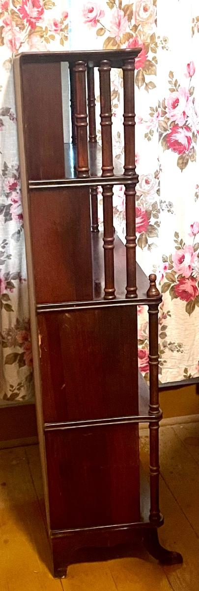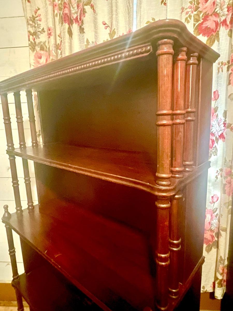 This vintage beauty would be the perfect addition to a cozy reading area. Spindles are in good condition. There are signs of wear and age on this as All pieces in this sale. Lovely piece! Great choice for your books or collectibles.