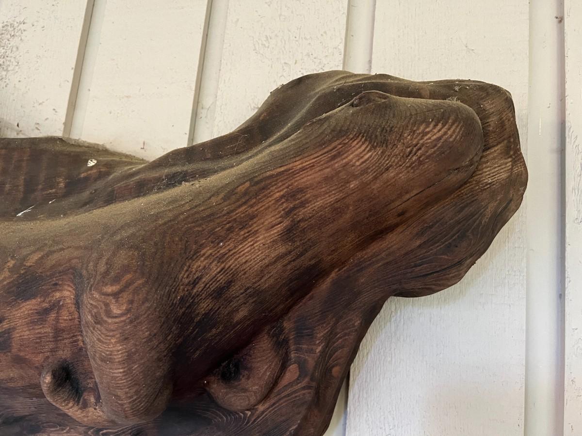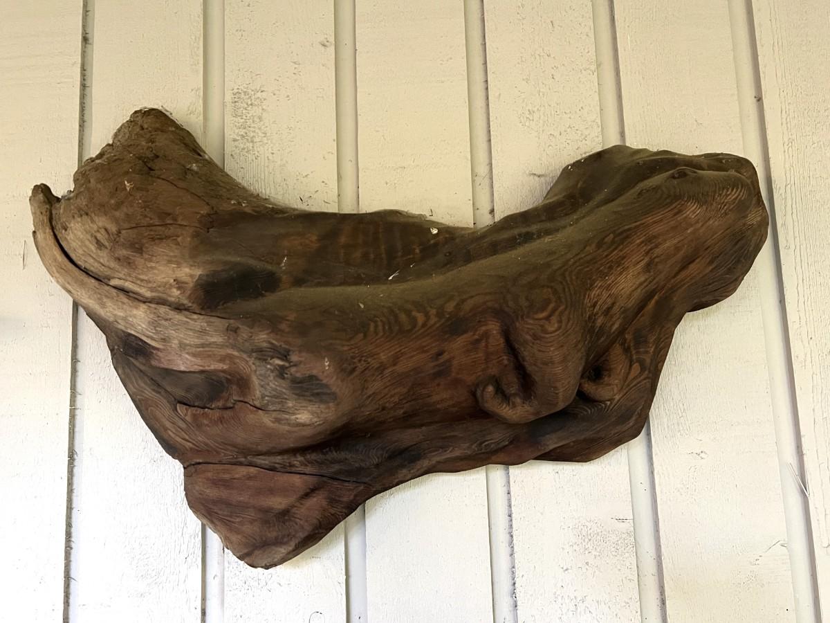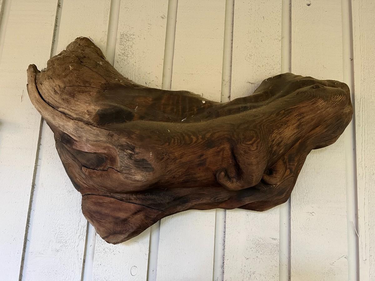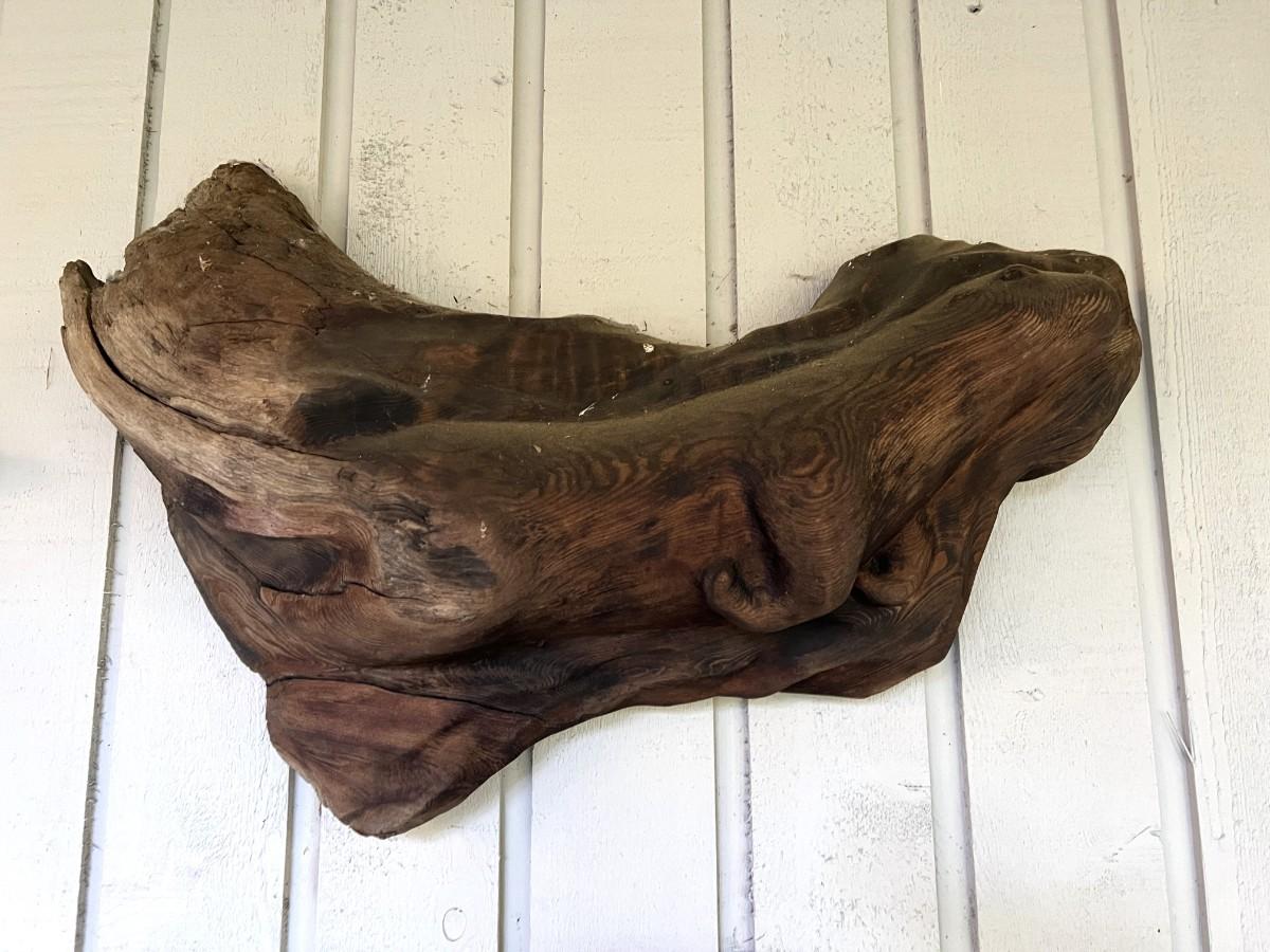 Lovely Carved Wood (Perhaps driftwood) Otter Animal Wall Art. From a Redmond estate, where it was placed in a covered patio area. Good condition, as shown.