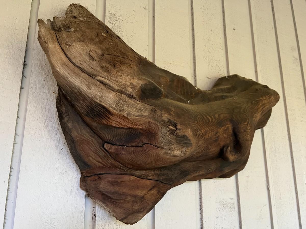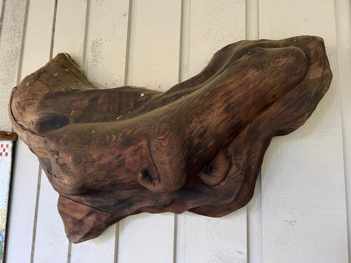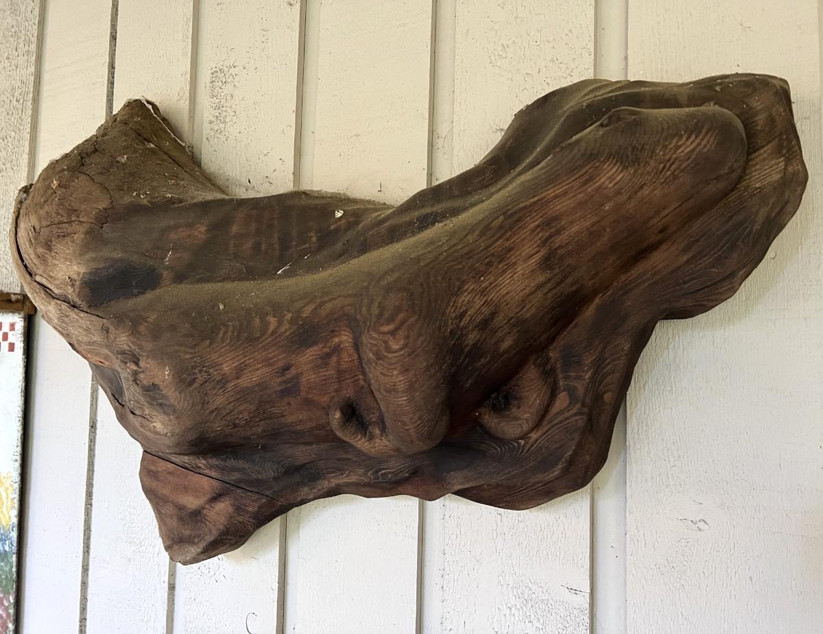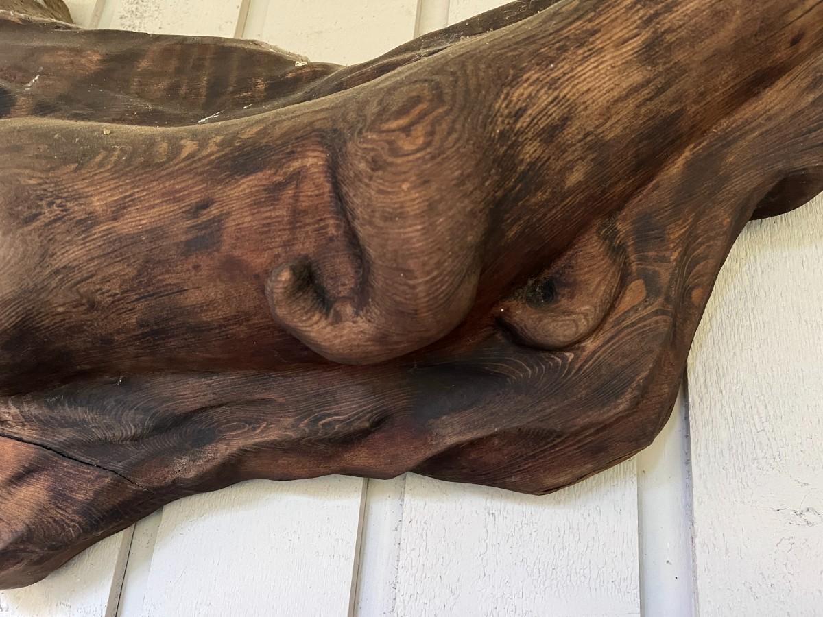 Lovely Carved Wood (Perhaps driftwood) Otter Animal Wall Art. From a Redmond estate, where it was placed in a covered patio area. Good condition, as shown.