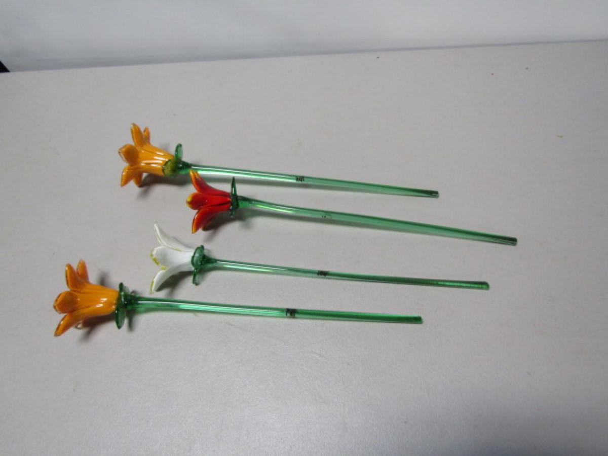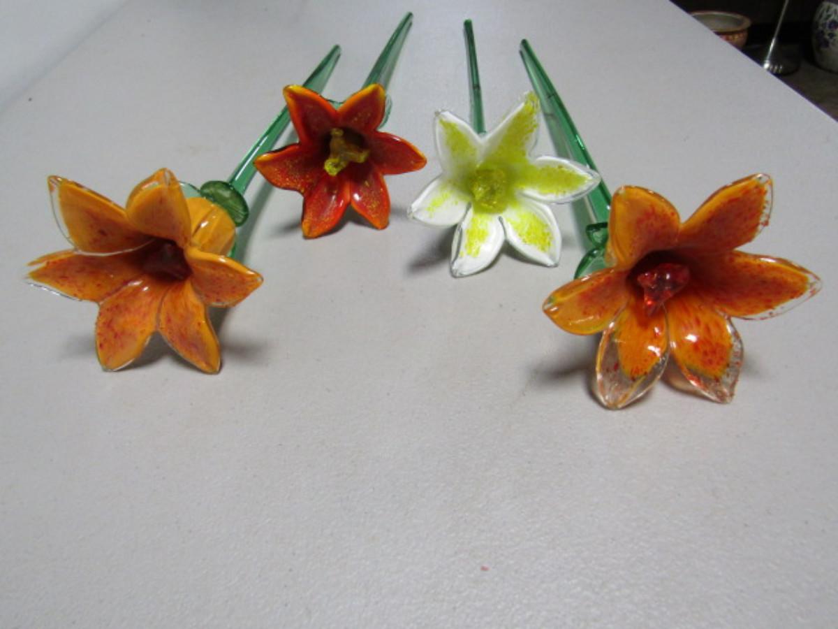 Lovely, Colorful Hand Blown Art Glass Flowers- Set of Four