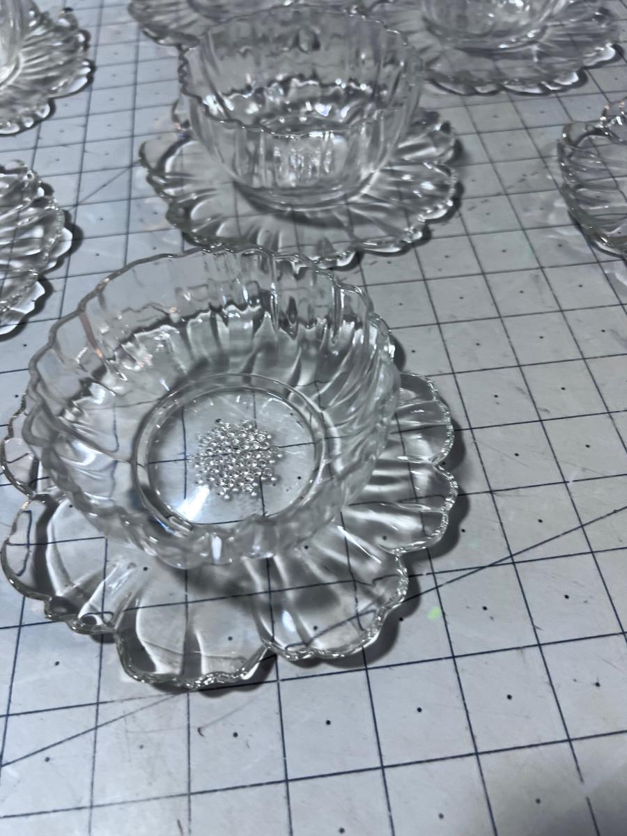 LOVELY Dessert Bowl (7) Berry Bowls with Attached Saucers SOOO CUTE!!! Perfect for Peaches & Cream