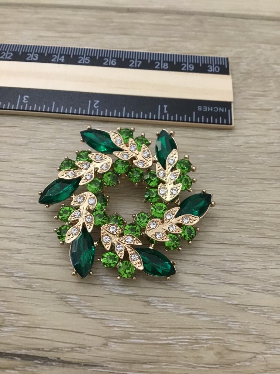 Lovely Forest GREEN Christmas WREATH Rhinestone Vintage Inspired Brooch or necklace pendant