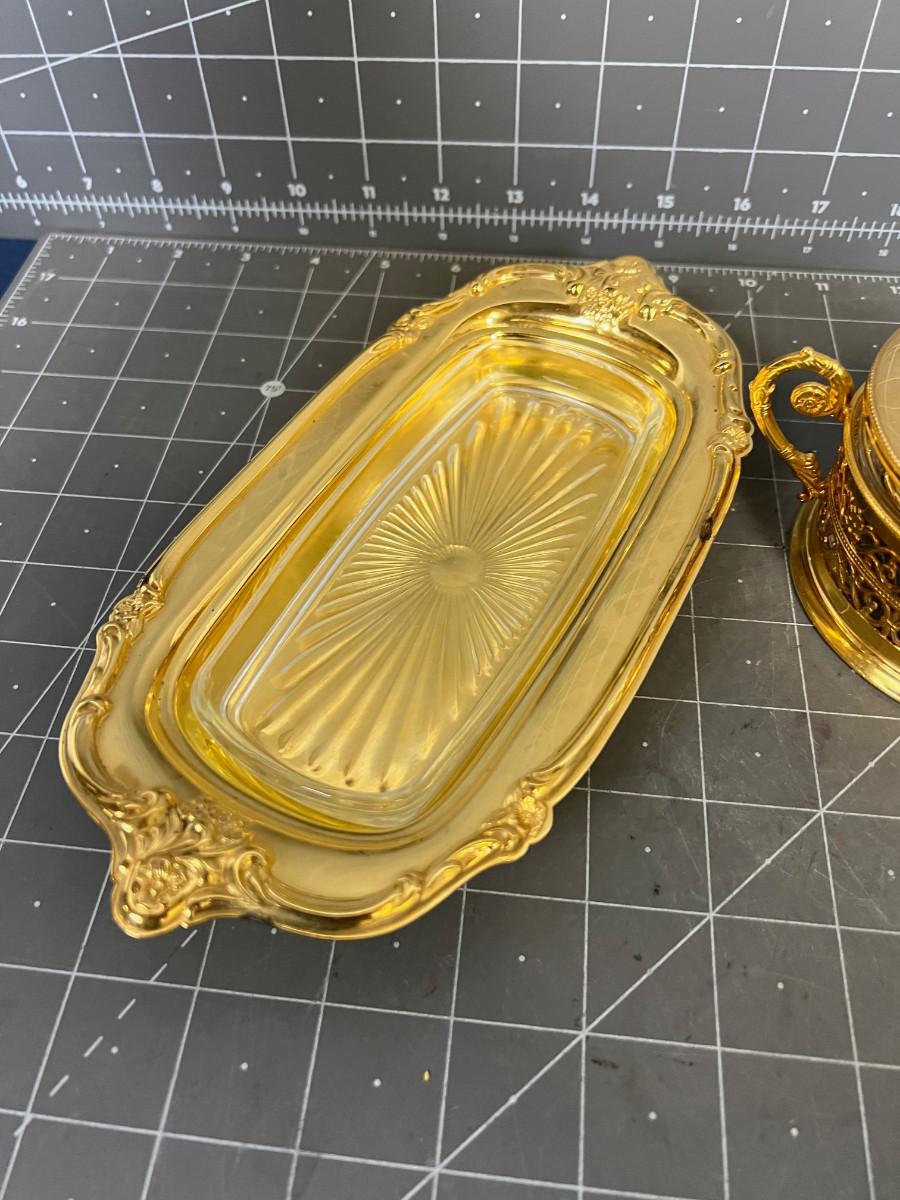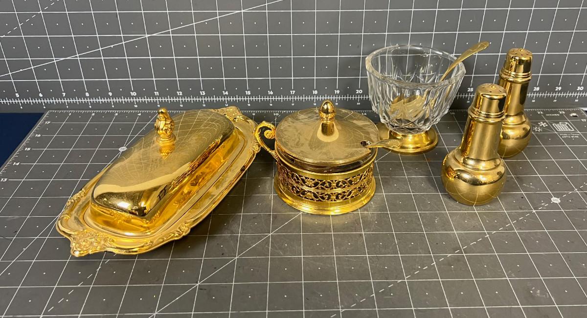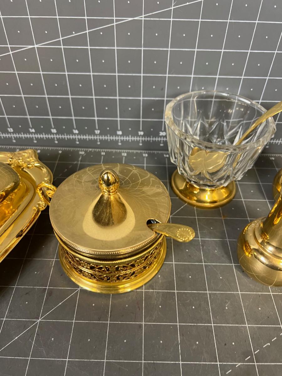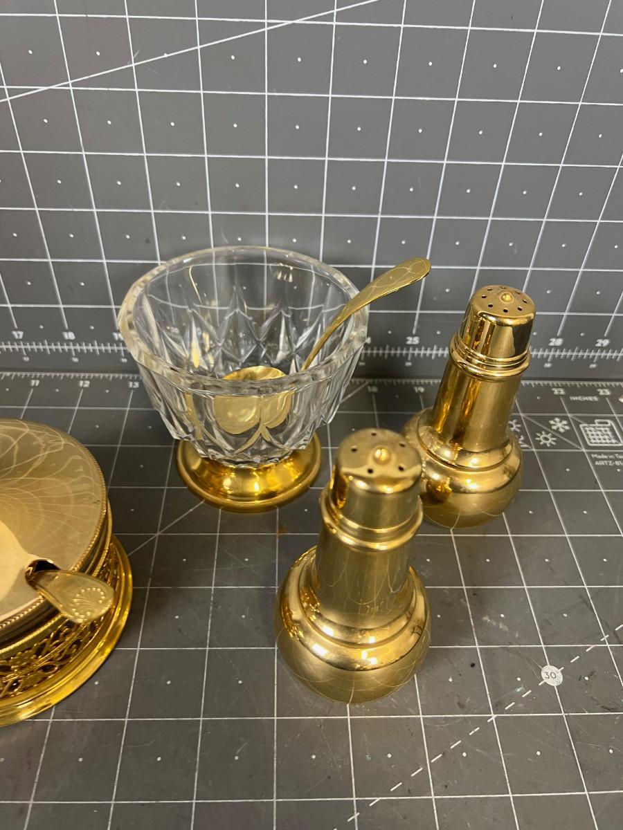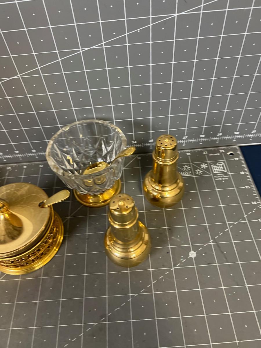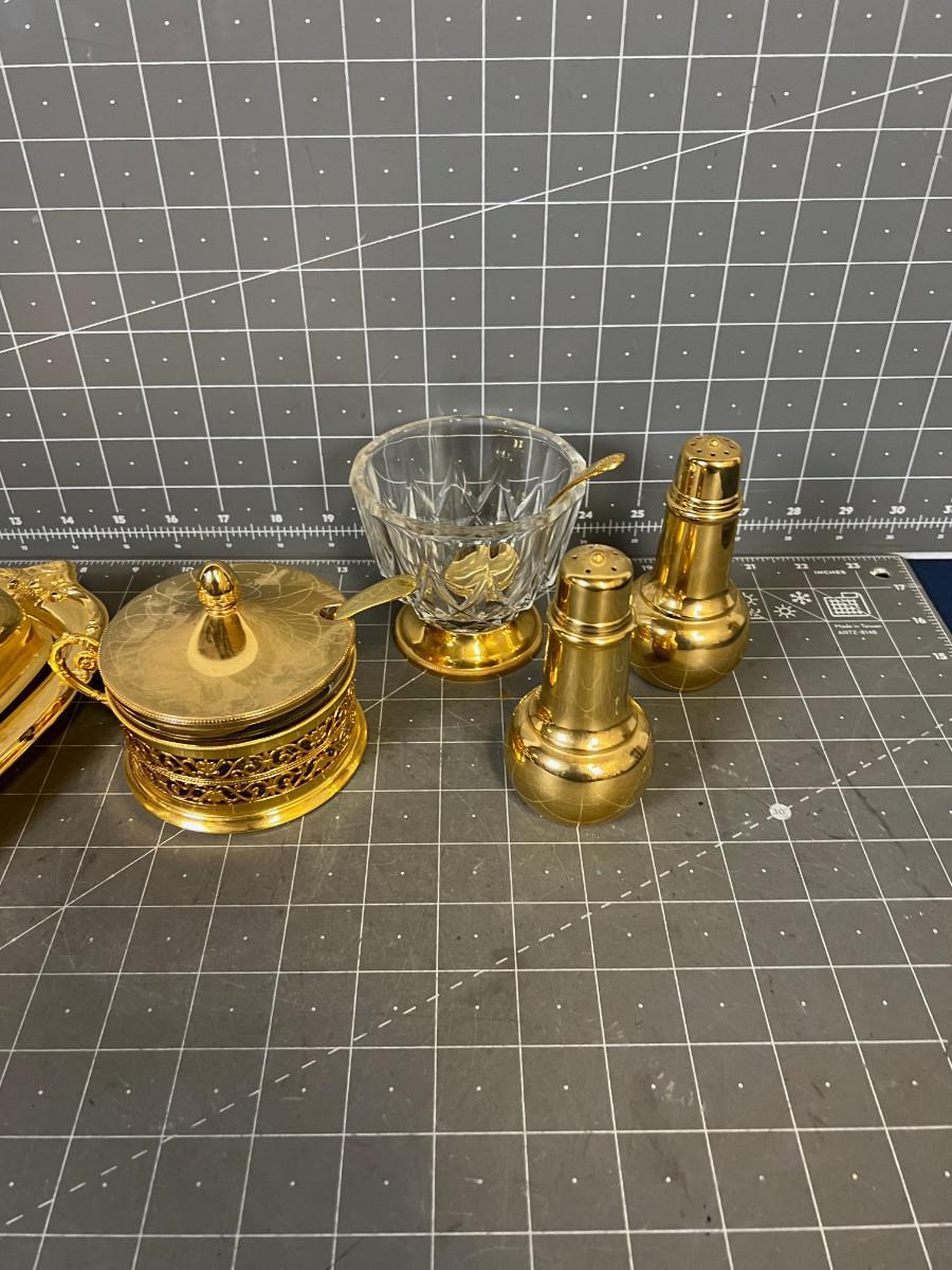 Lovely Gold Toned Serving Items S&P, Jelly etc.