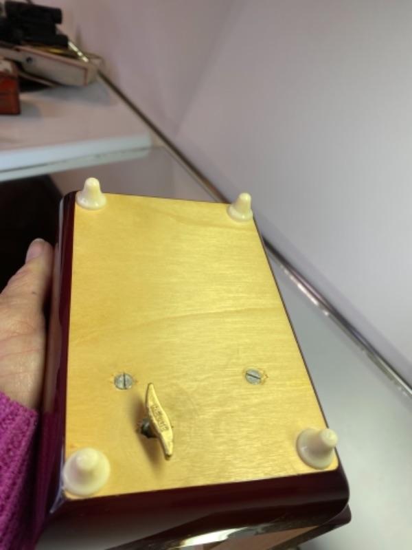 Nice retro vintage footed music box by REUGE, known for Swiss boxes. Lacquered with classical ballet decoration on top, inside lined in red velvet with spinning ballerina. Works , appears unused.