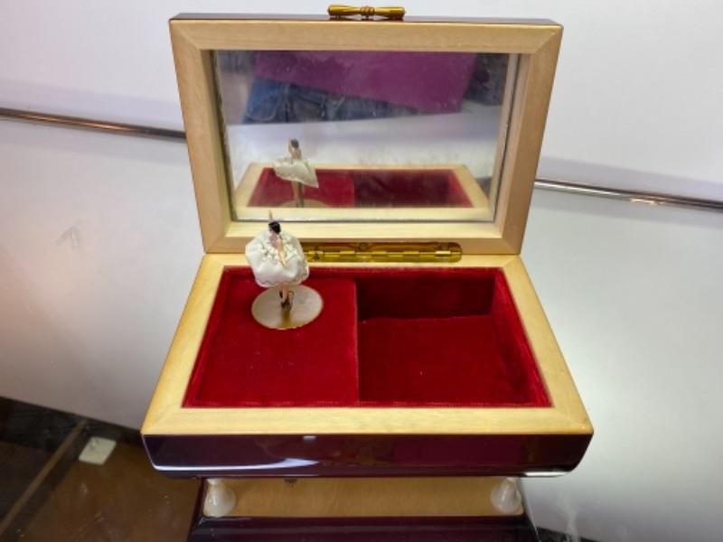 Lovely Lacquer Vintage Swiss REUGE Jewelry Music Box with spinning ballerina