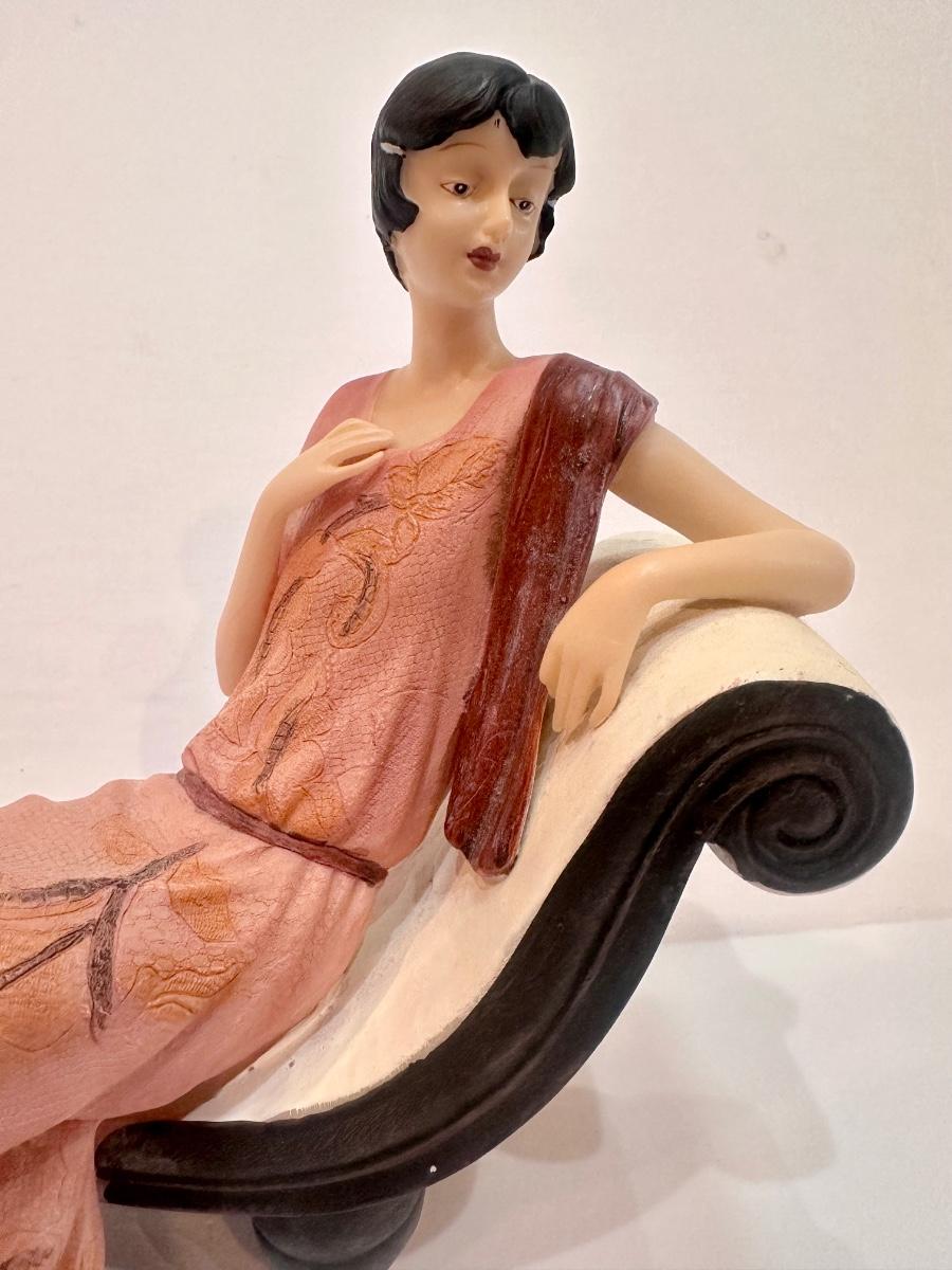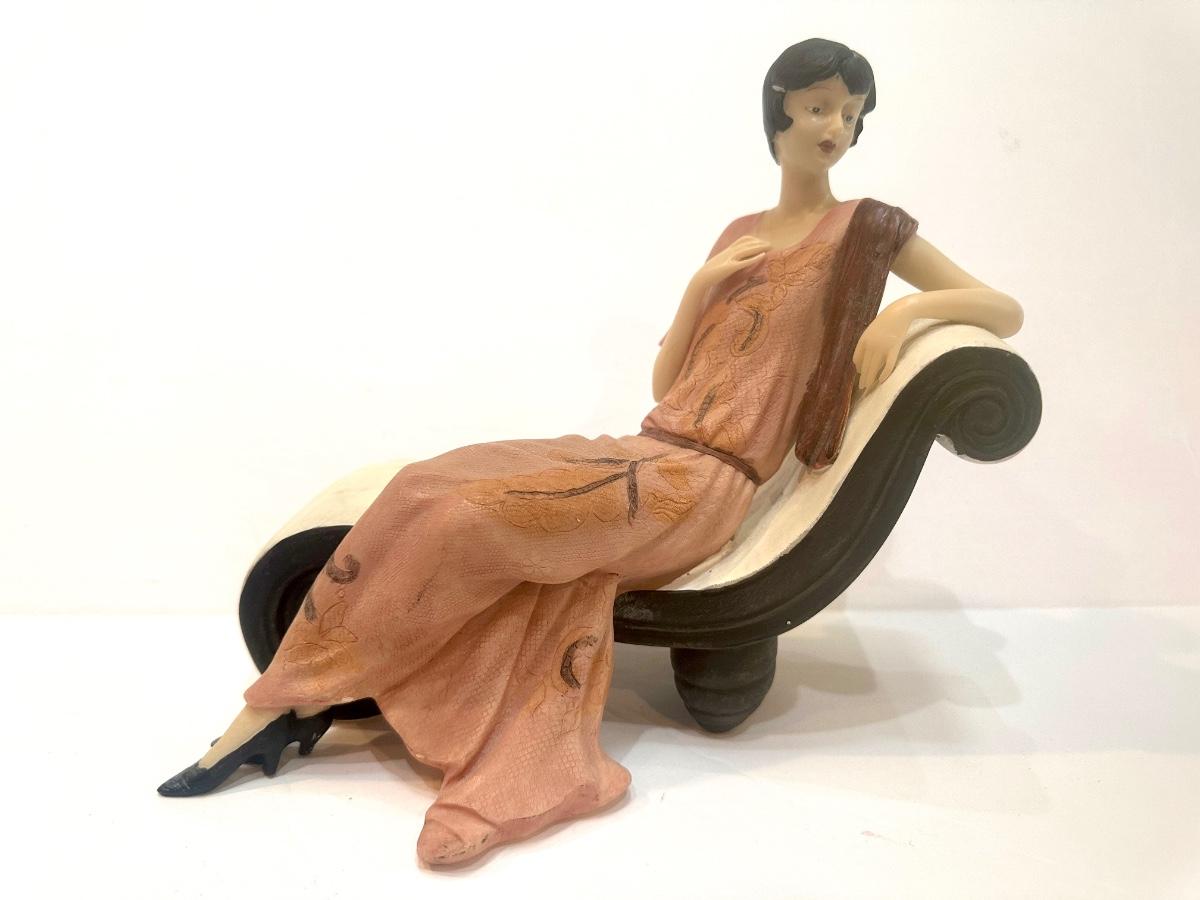 Lady in 1920’s motif, lounging on a chaise. Just wonderful! 9” long