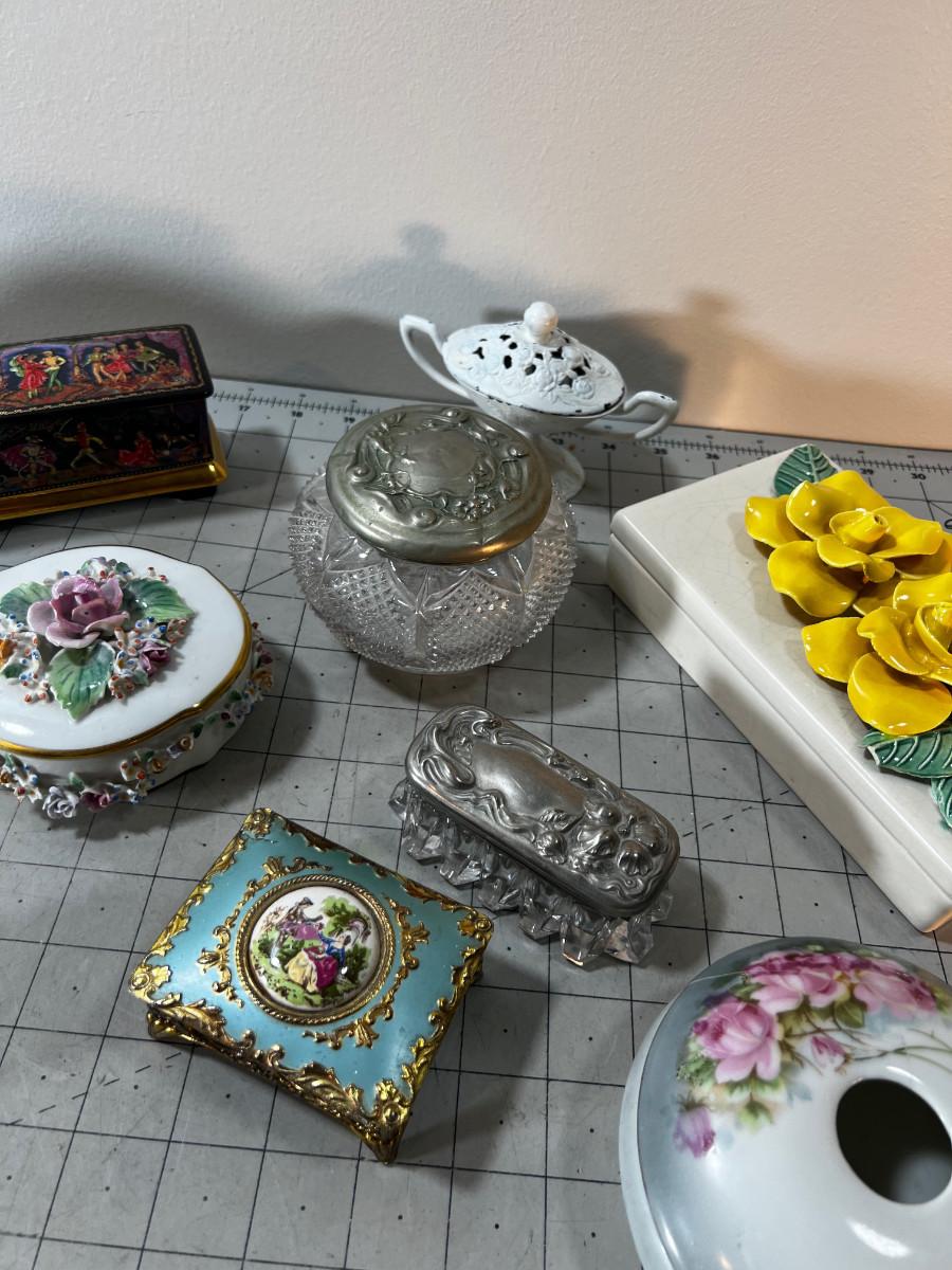 Lovely Lidded Fancy Things:  Jars, Music Keepsake boxes.