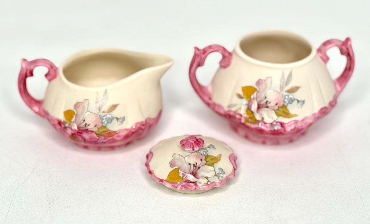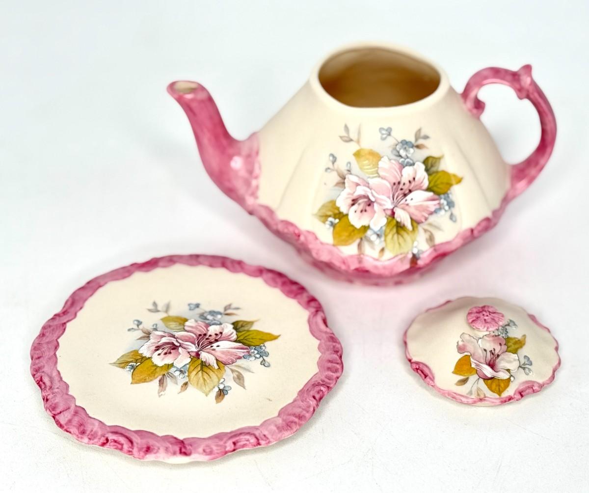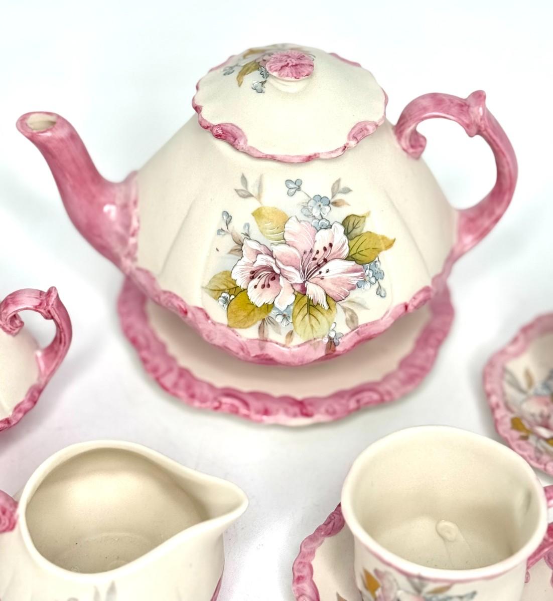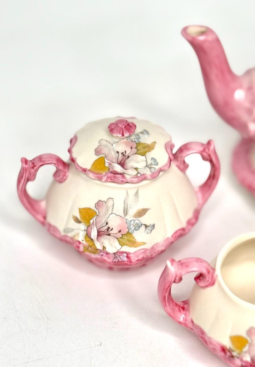 Lovely Little Hand Painted Pink Floral Tea Set