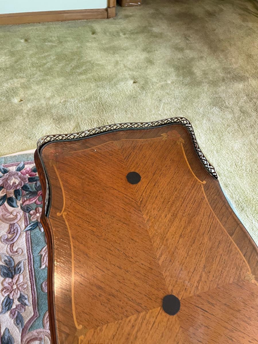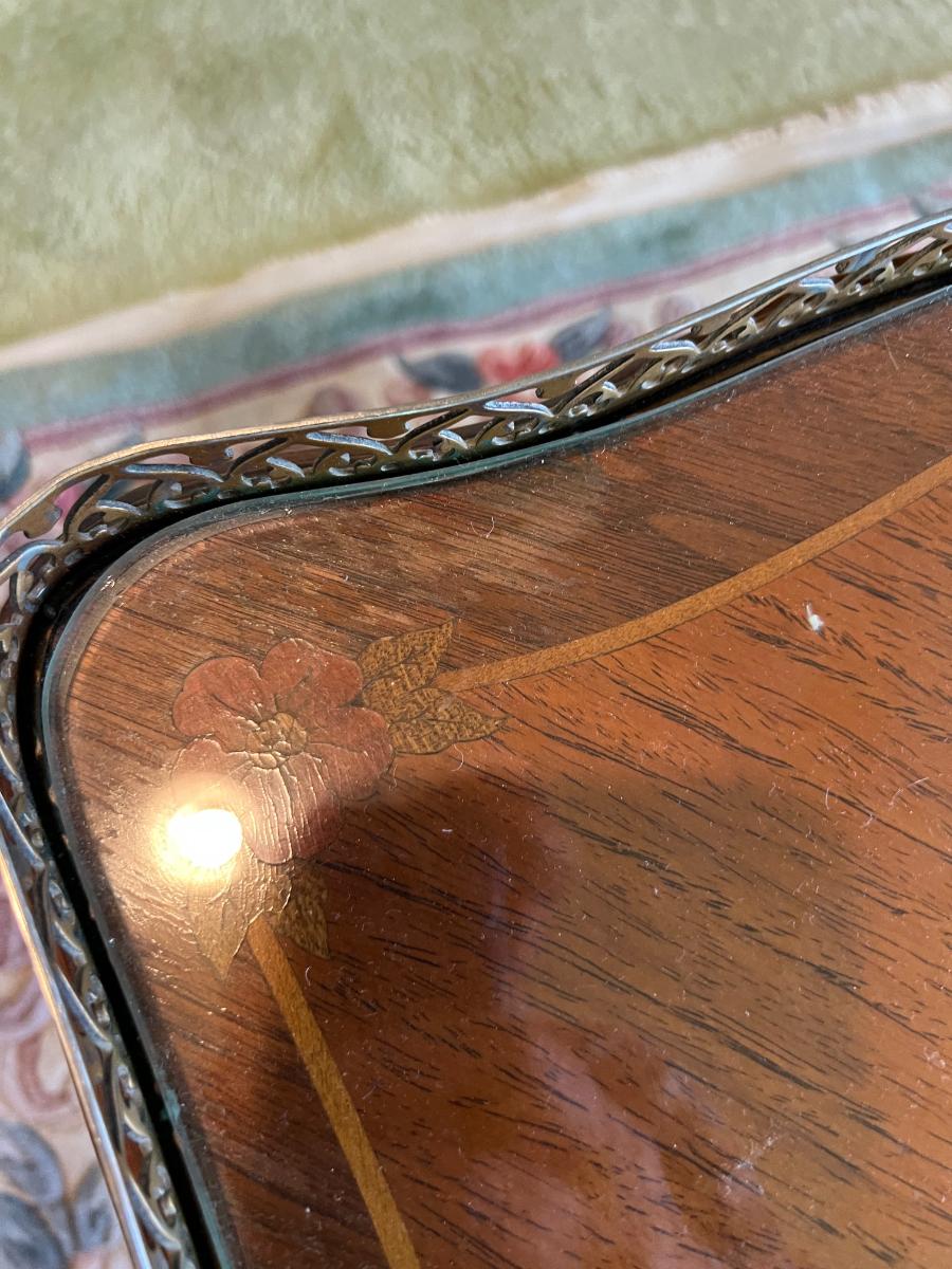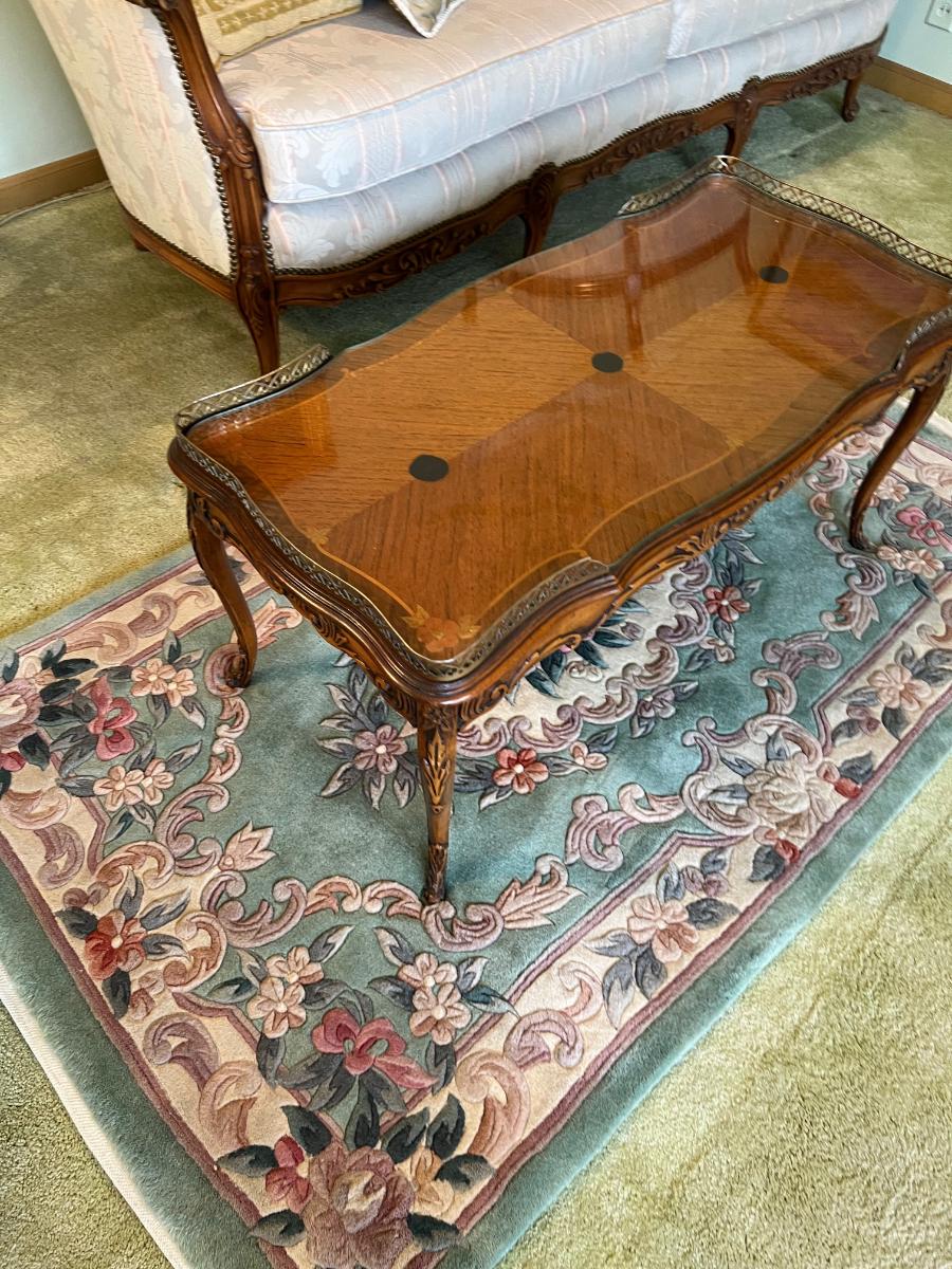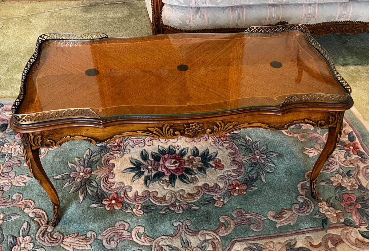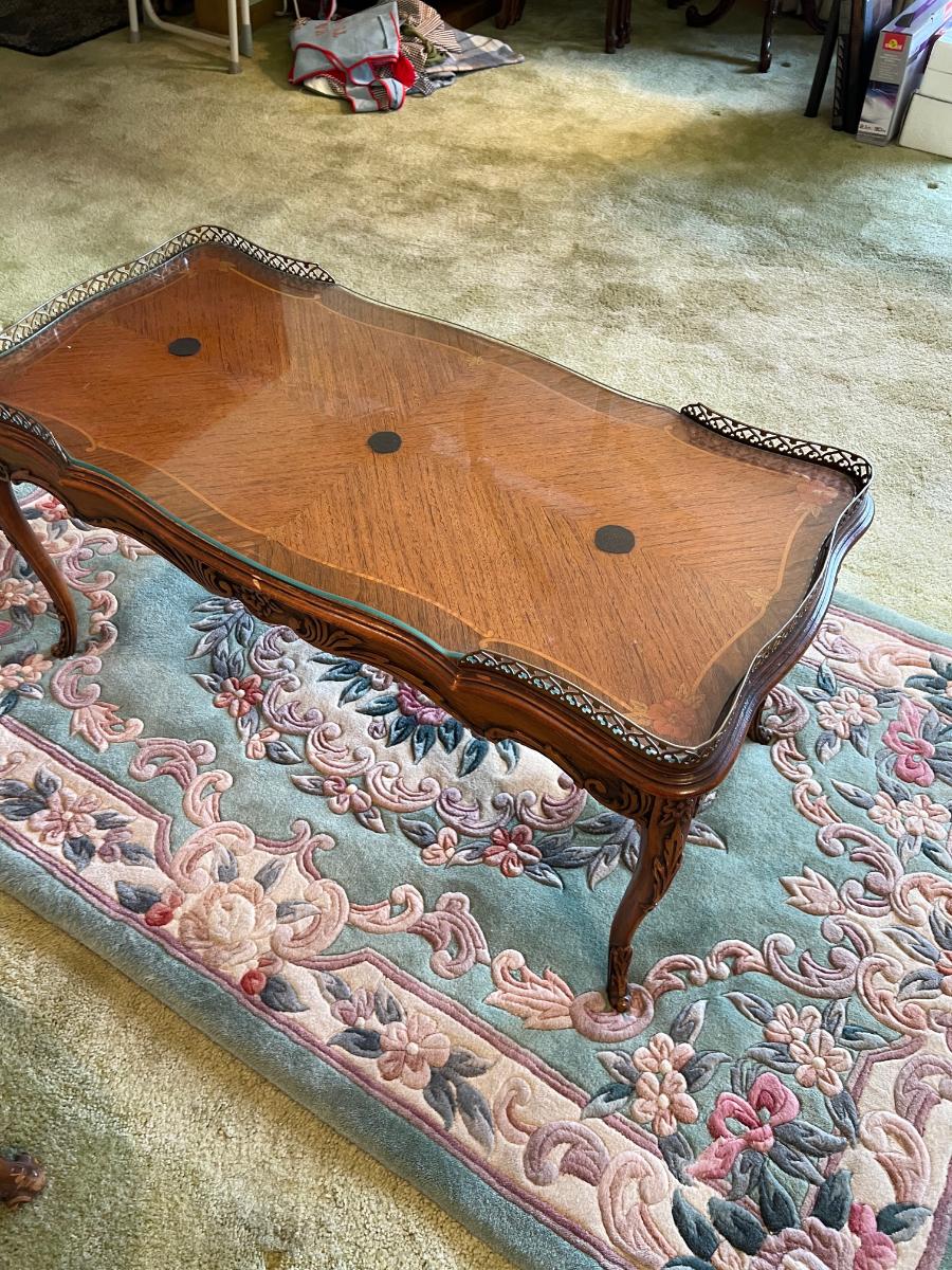 Lovely Little Walnut Coffee Table with a little Inlay and Glass Top.