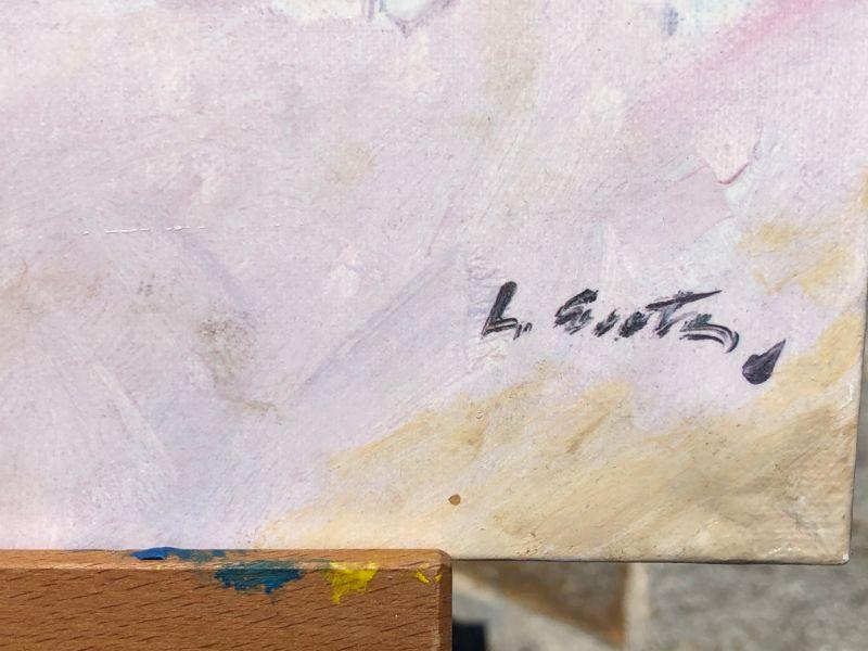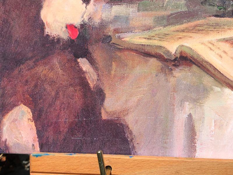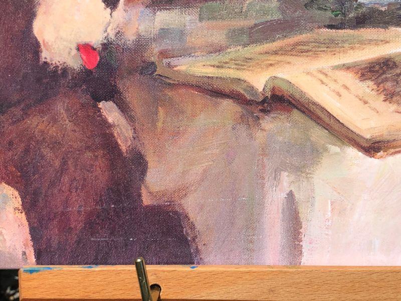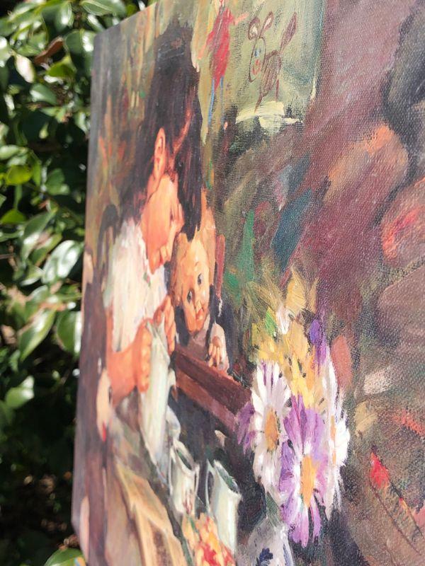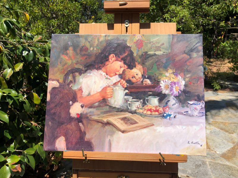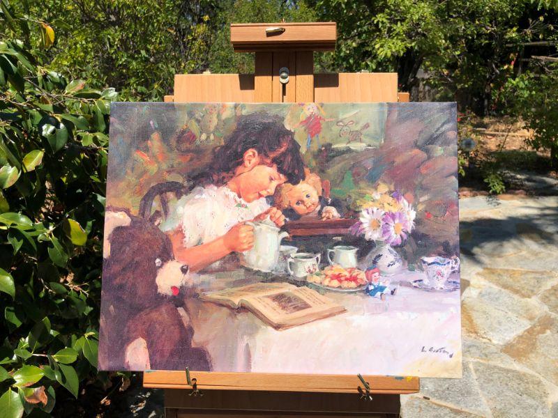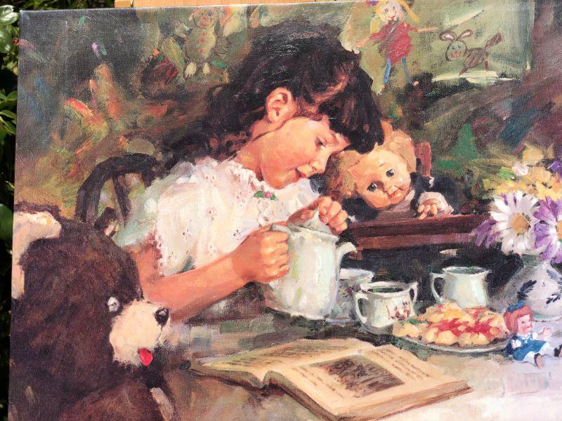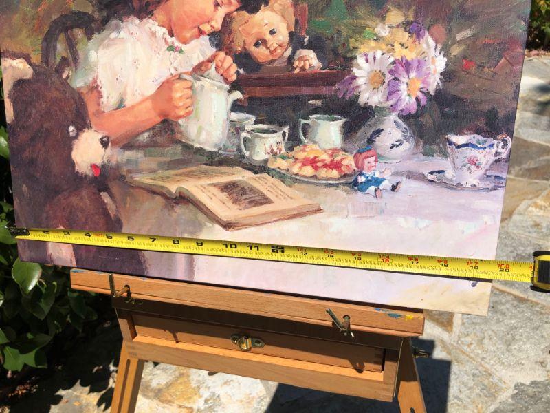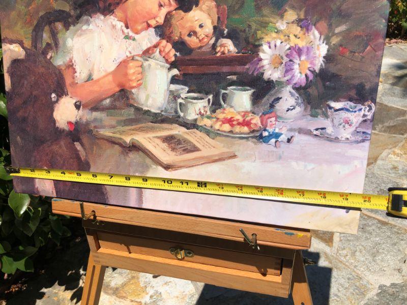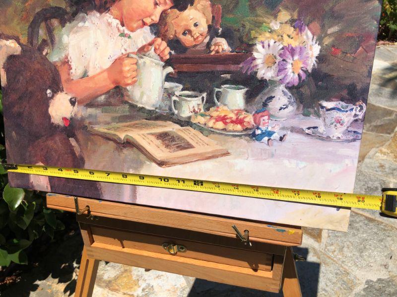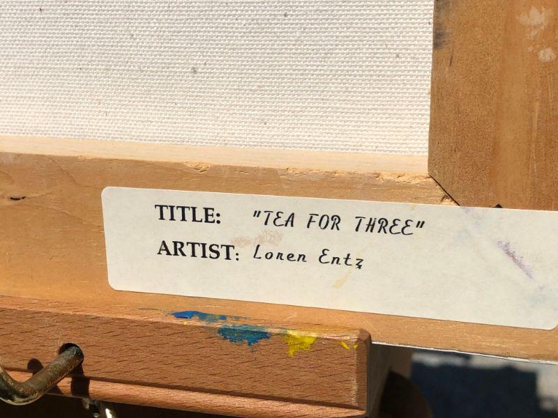 A very sweet piece of art. A quality print on canvas. Loren Entz "Tea for Three". In good condition.