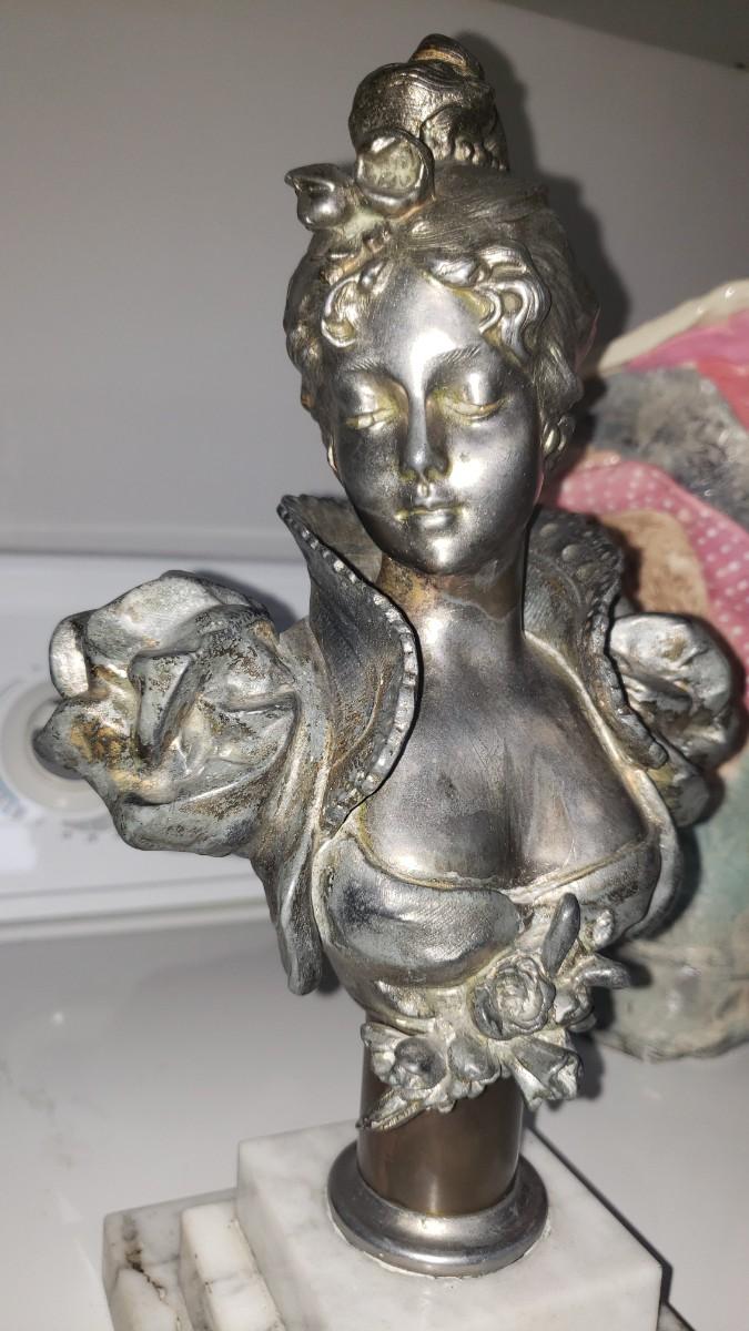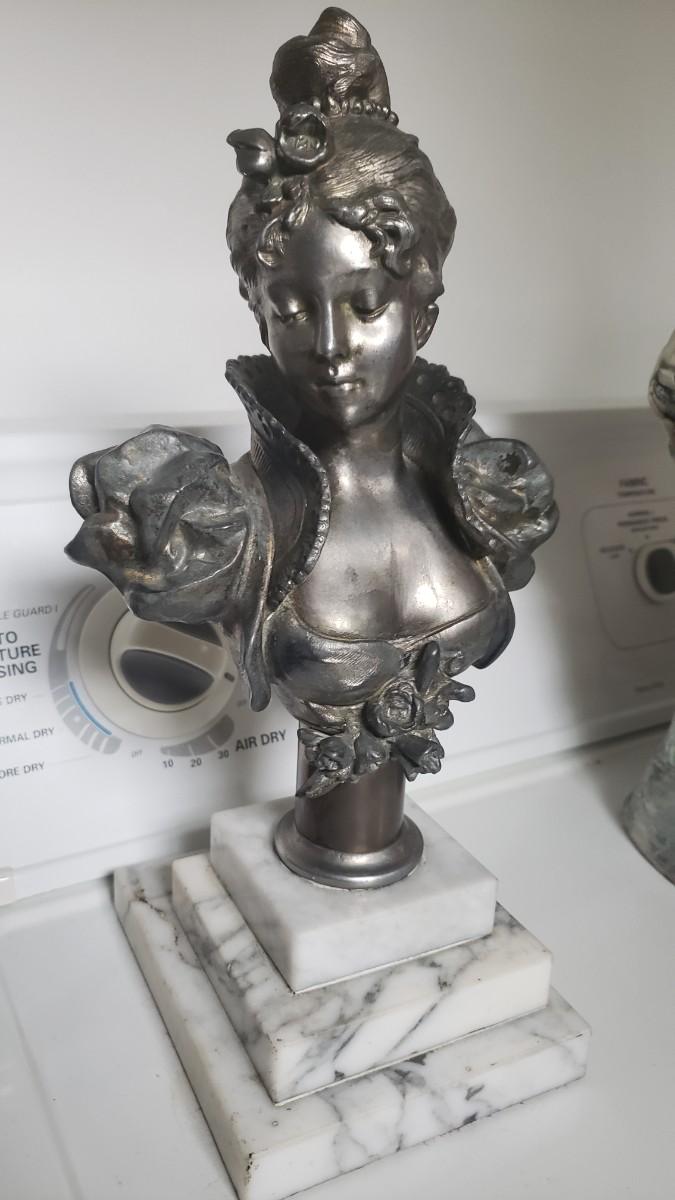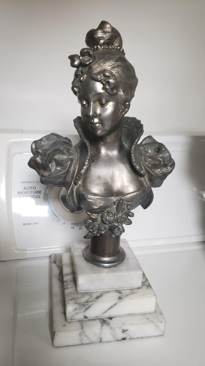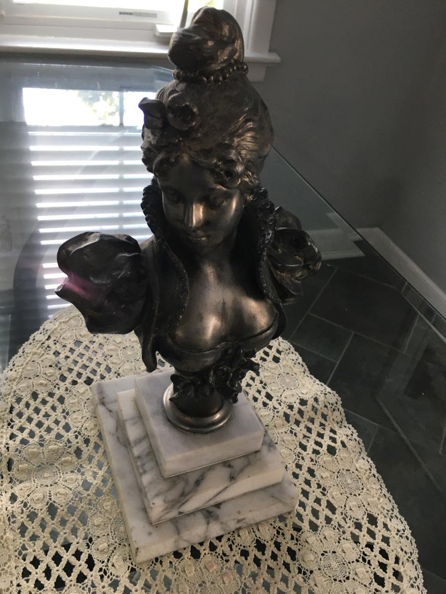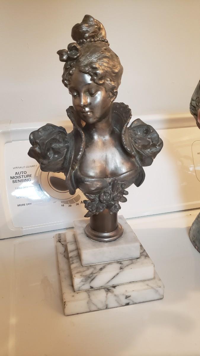 Bust of woman on marble base.