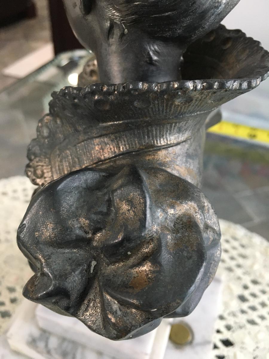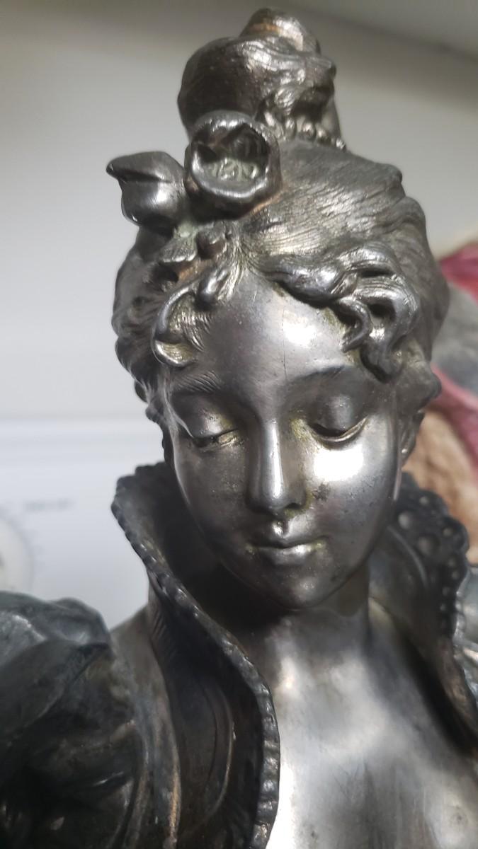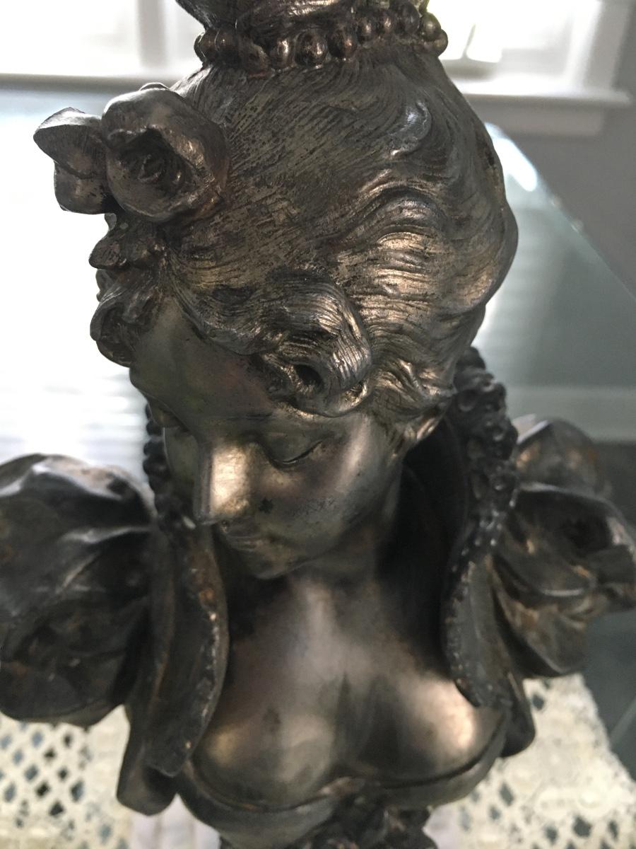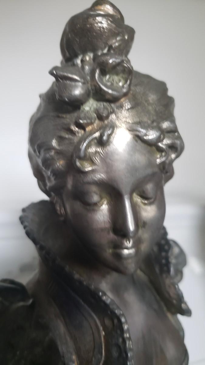 Bust of woman on marble base.