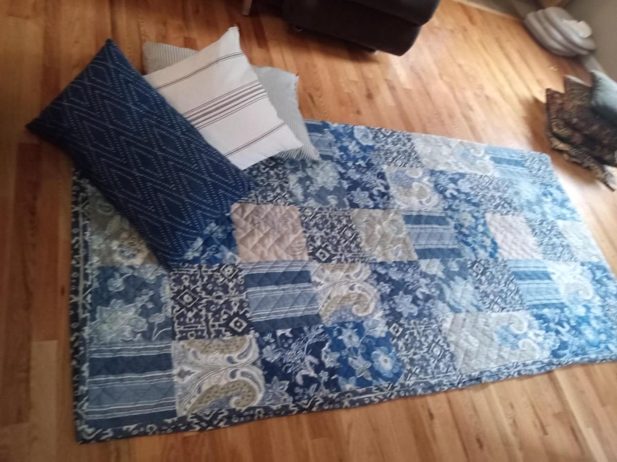 B. SMITH QUEEN QUILT, DOWN FEATHERED THROW AND BED PILLOWS