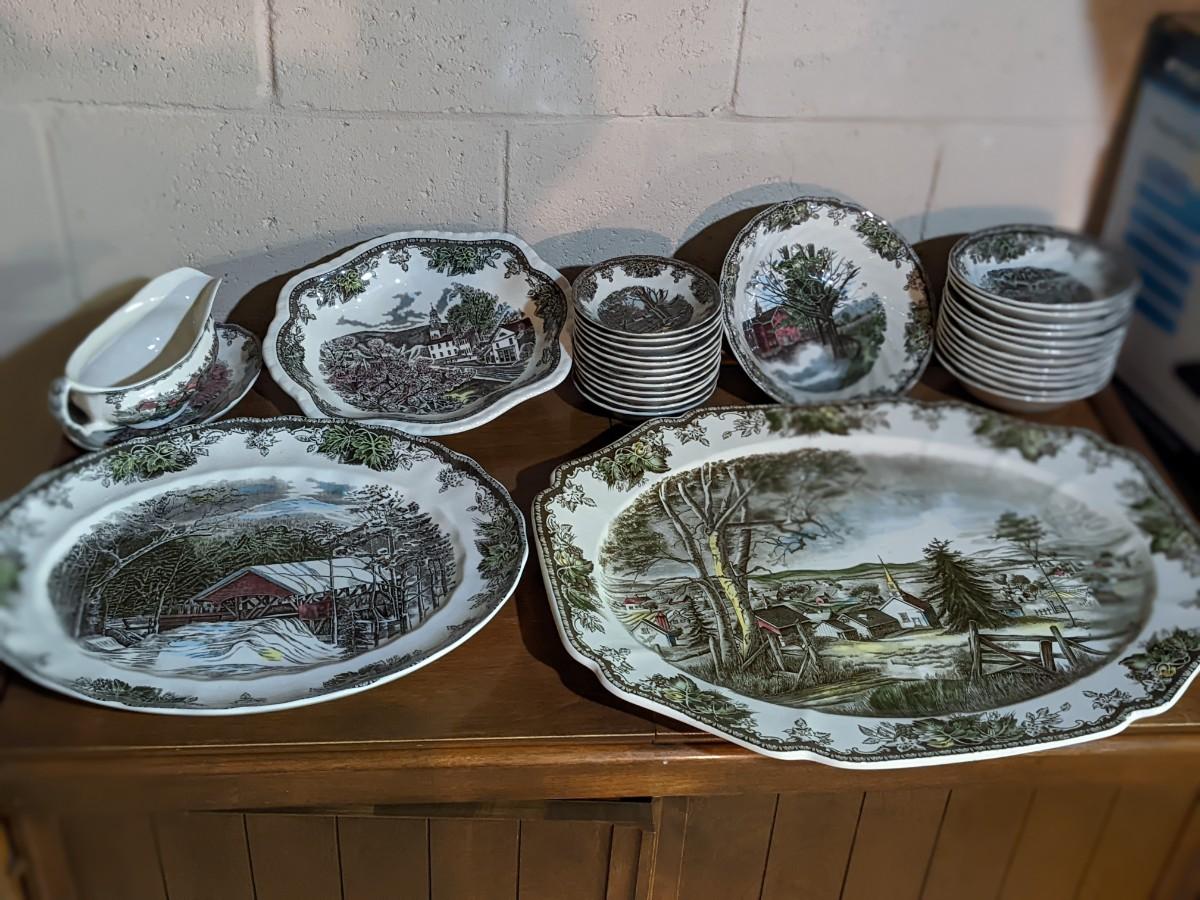 Lovely, Rare Set of 12 Johnson Bros The Friendly Village Dishes