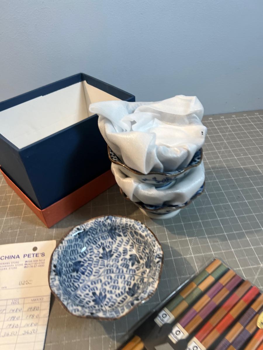 Lovely Rice Bowls with Chop Sticks NEW never Used.