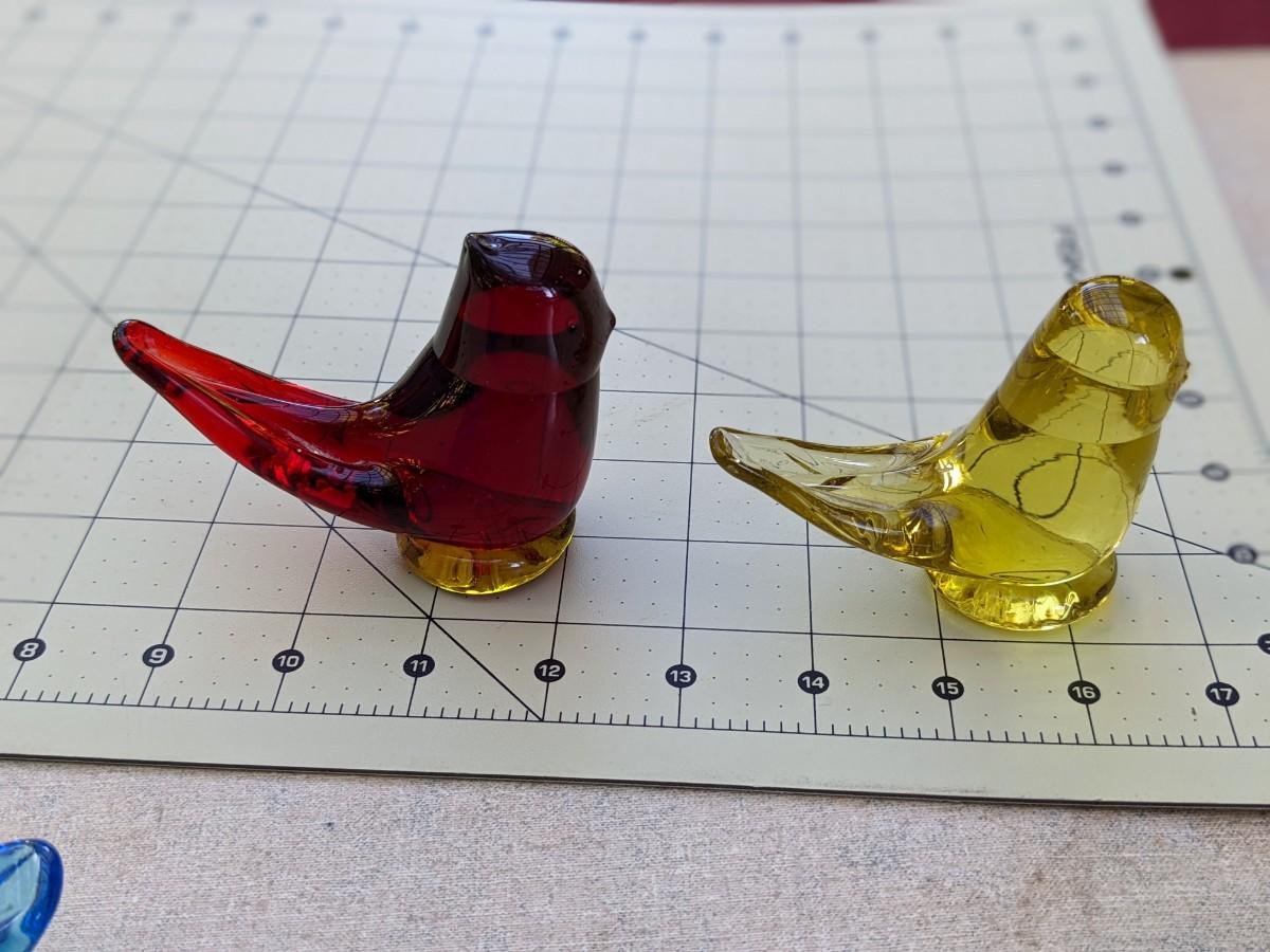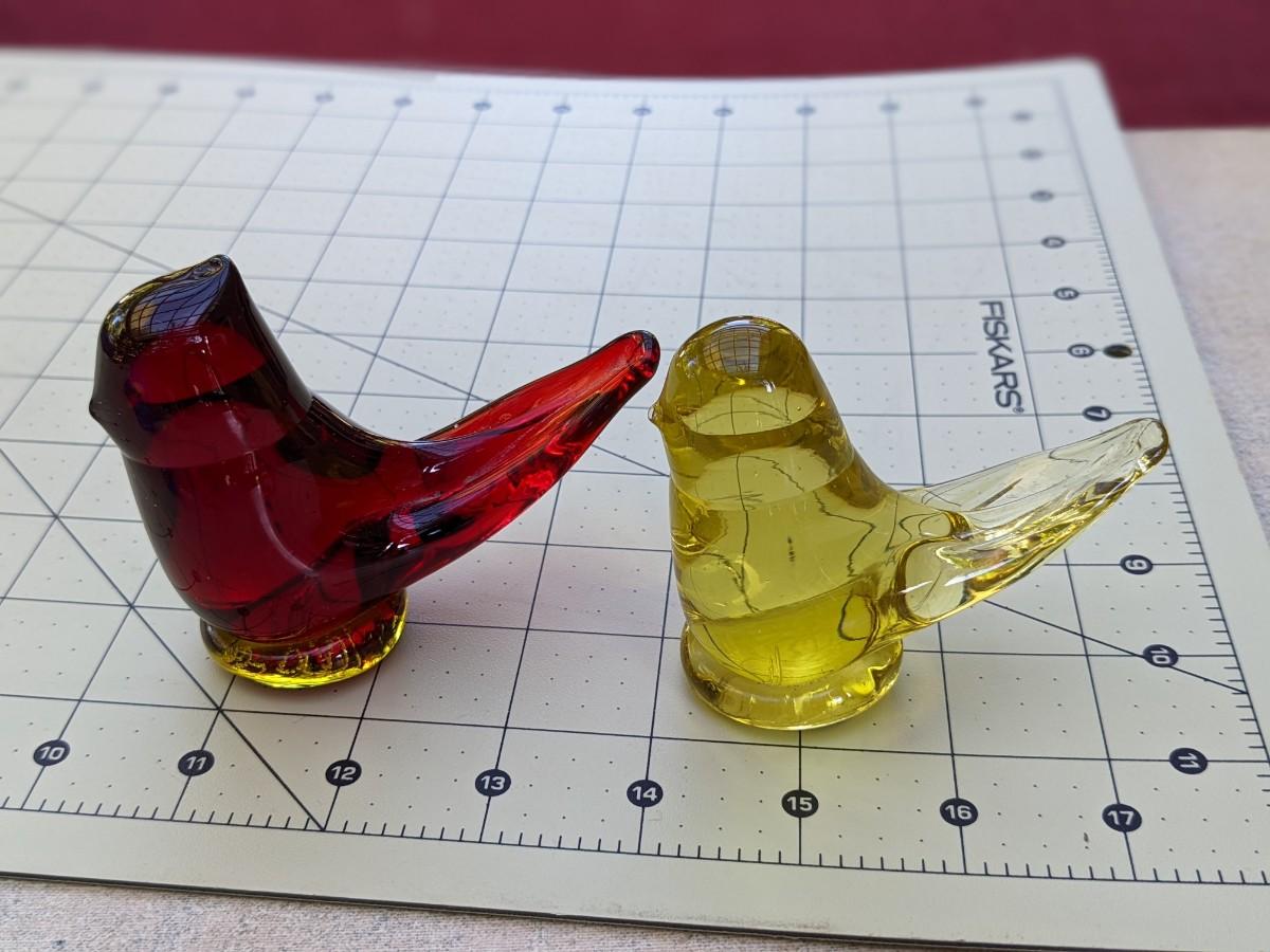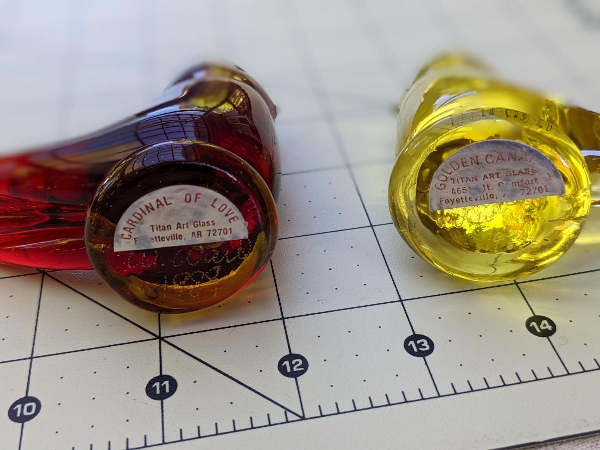 Lovely Titan Art Glass Cardinal of Love and Golden Canary