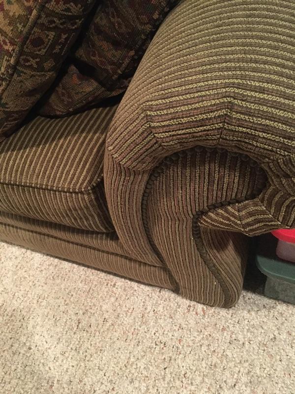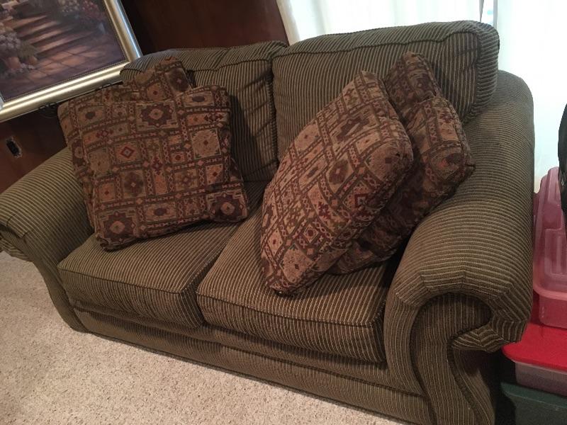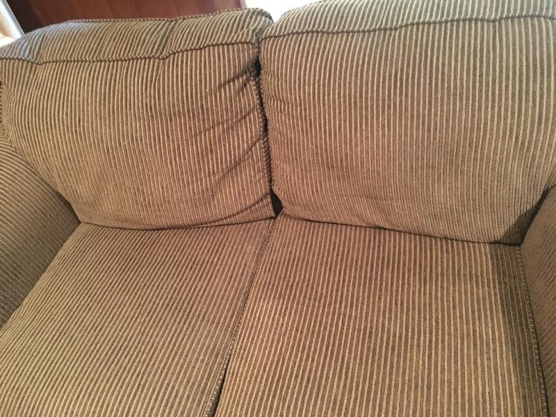 Wide corduroy loveseat, comes with pillows. 33x36Hx64W