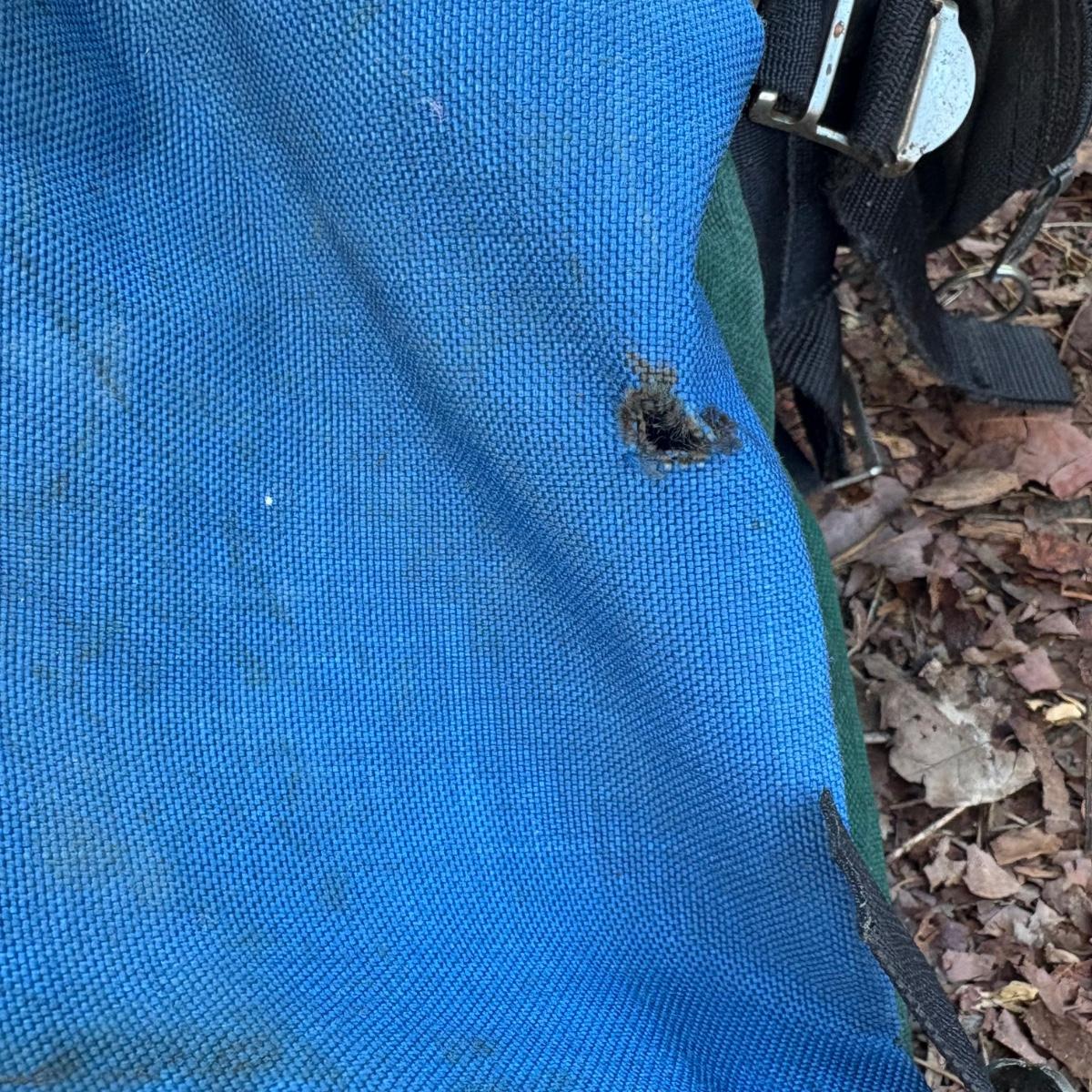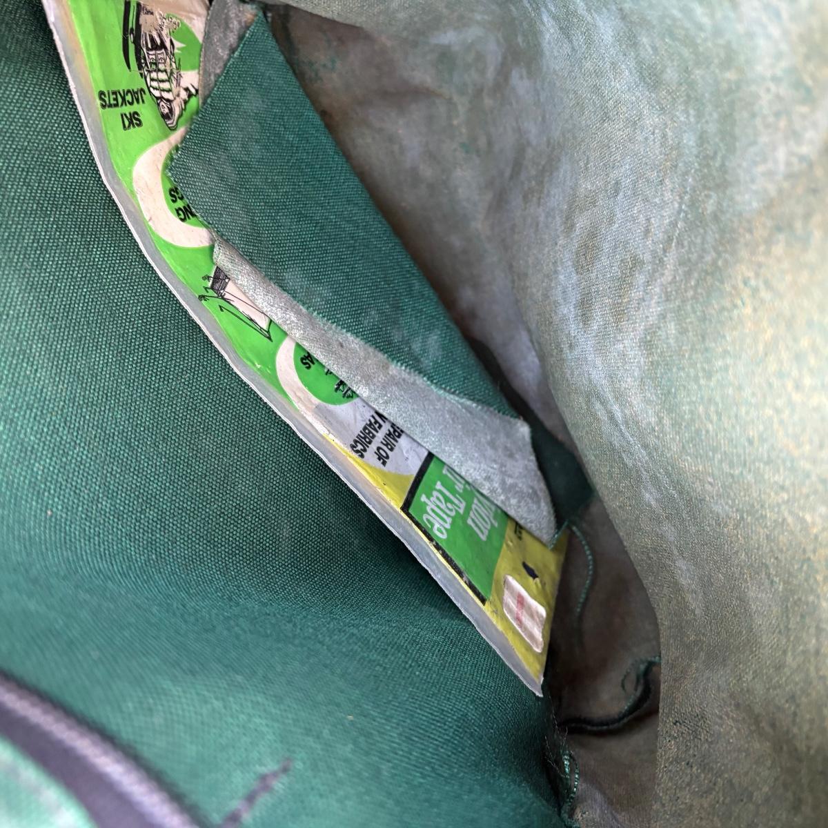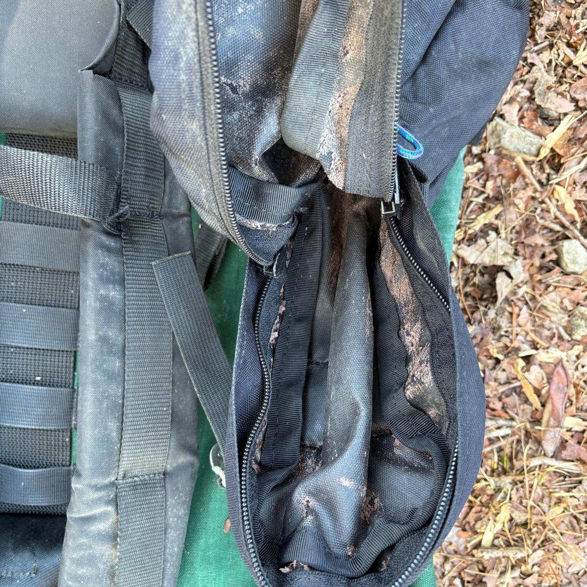 Well-loved pack measures approx. 19” x 29”. Multiple pockets, padded hip rests. Some wear but plenty of life left. Slight mildew smell.