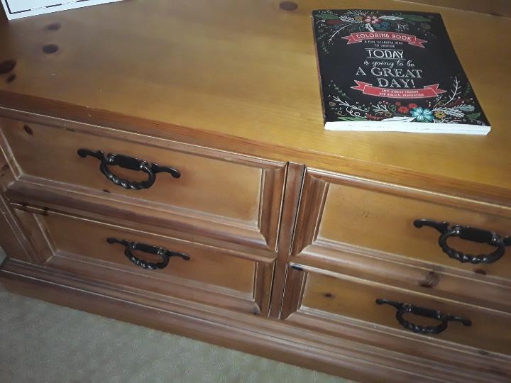 This is the lower part of an armoire with a shelf laid on top. Owner used it as TV stand.
